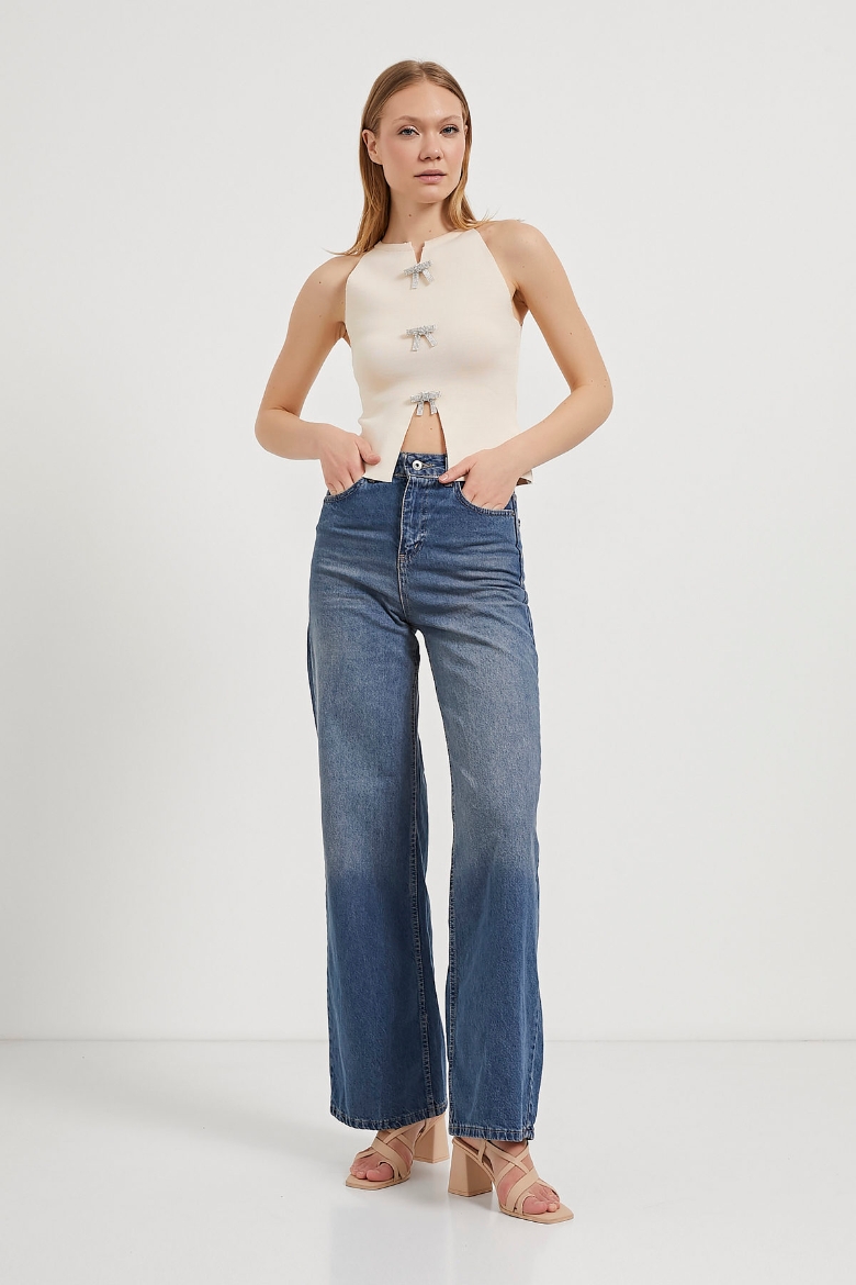 ARMALIFE 6594 FİYONK AKSESUARLI KOLSUZ TRİKO KADIN BLUZ