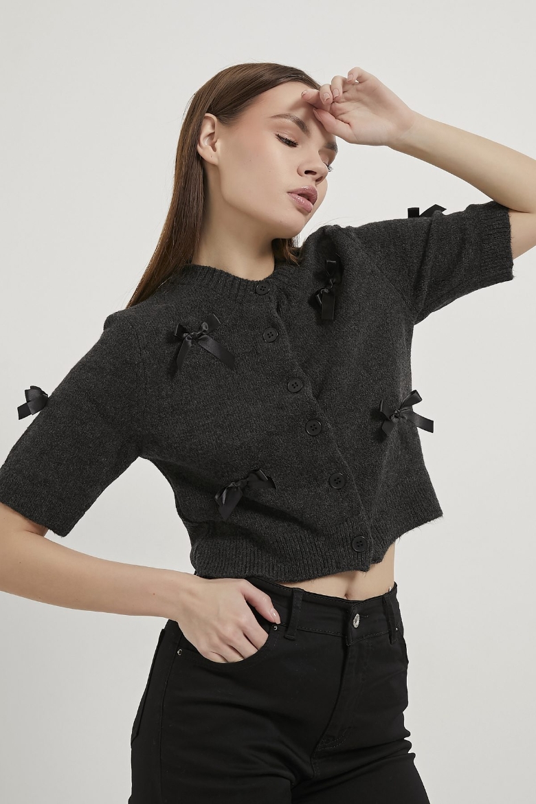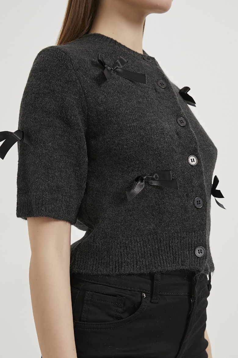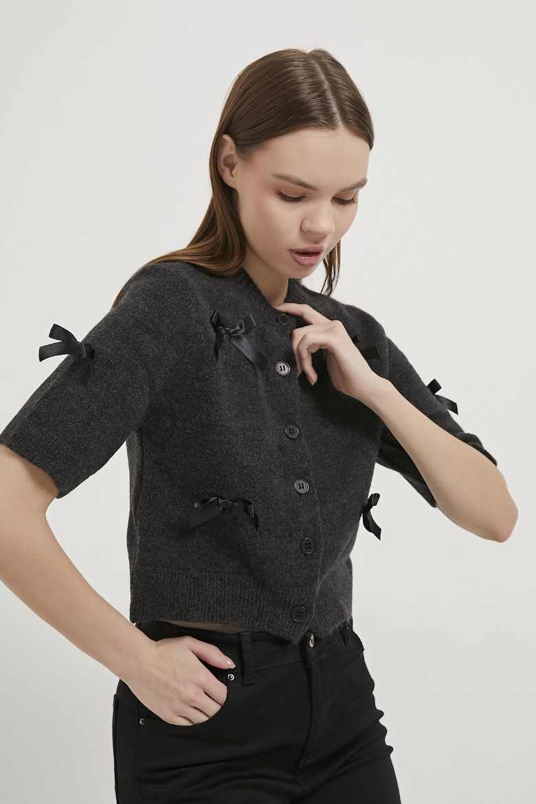 ARMALIFE 6626 FİYONK DETAYLI KISA KOL TRİKO KADIN HIRKA