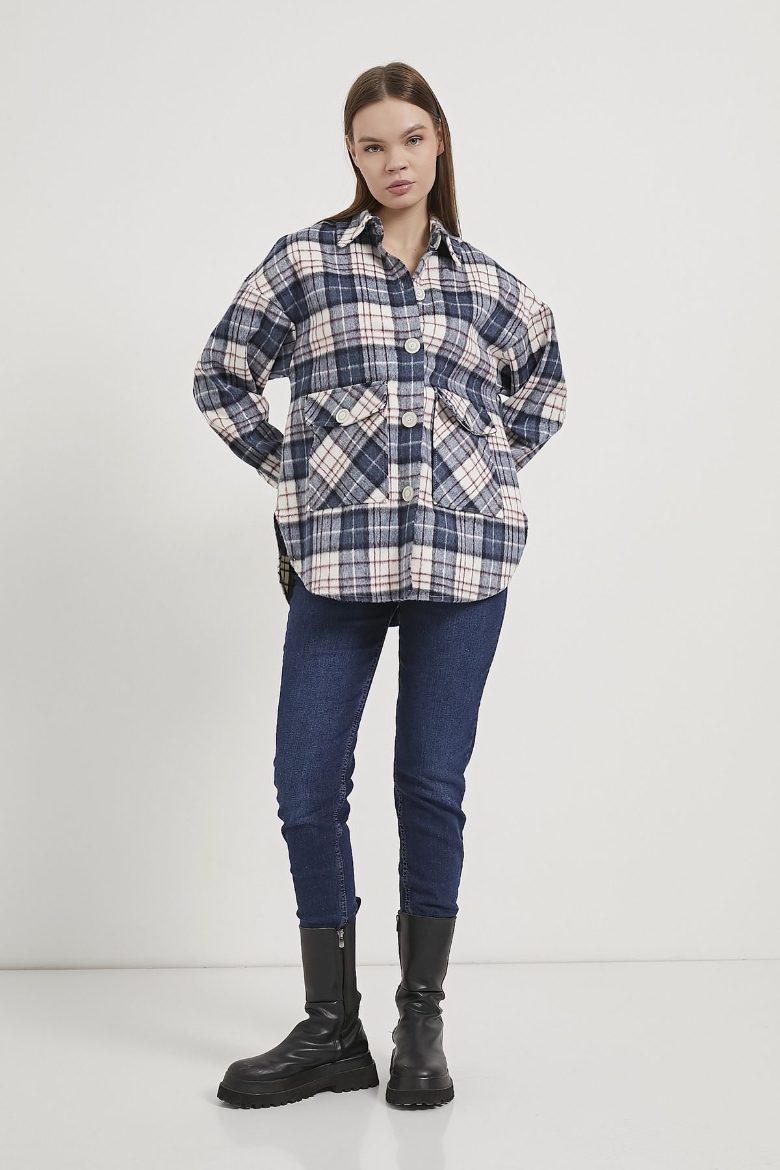 ARMALIFE 6671 CEP DETAYLI EKOSE KALIN KADIN GÖMLEK