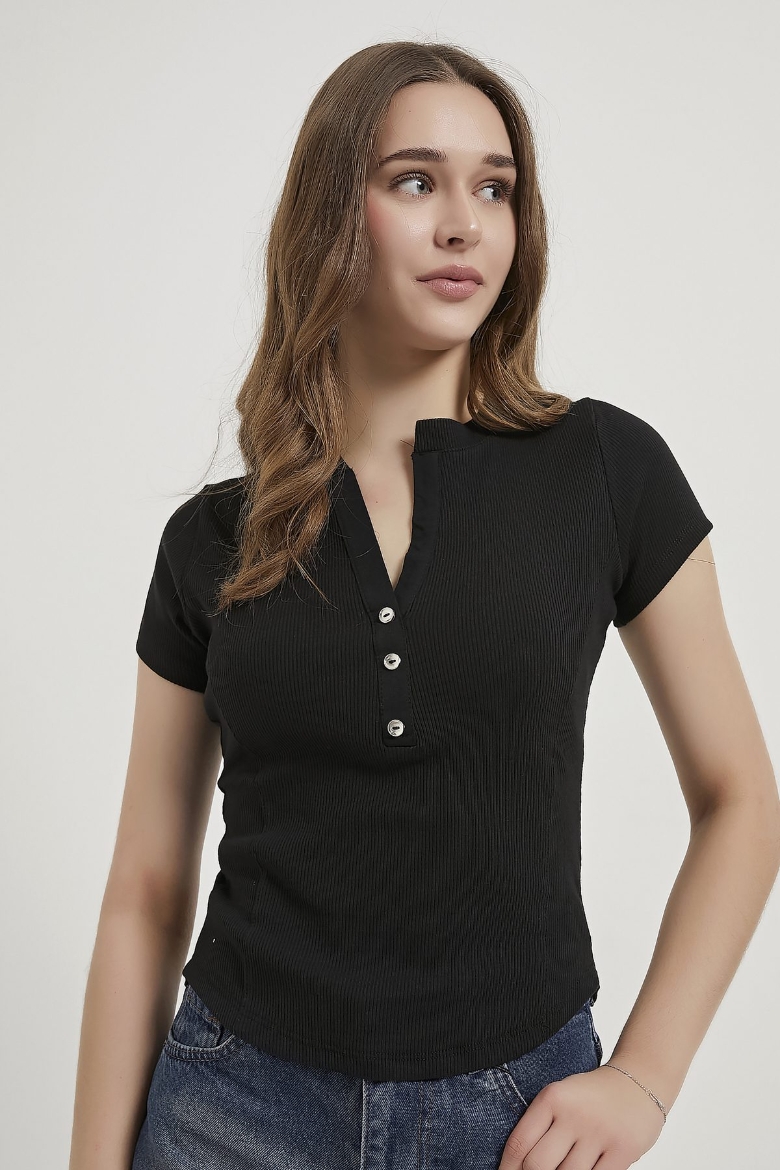 ARMALIFE 6681 V YAKA DÜĞME DETAYLI CROP KADIN BODY