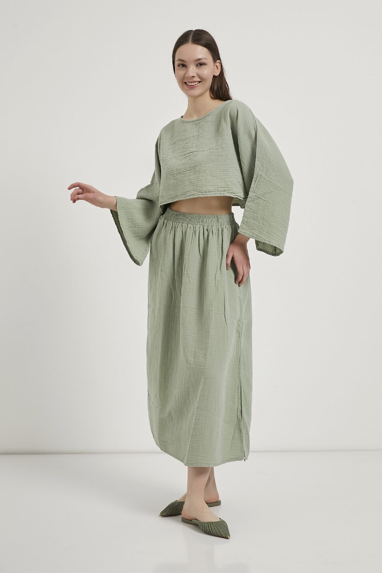 ARMALIFE 6684 MUSLİN ETEK-BLUZ KADIN TAKIM