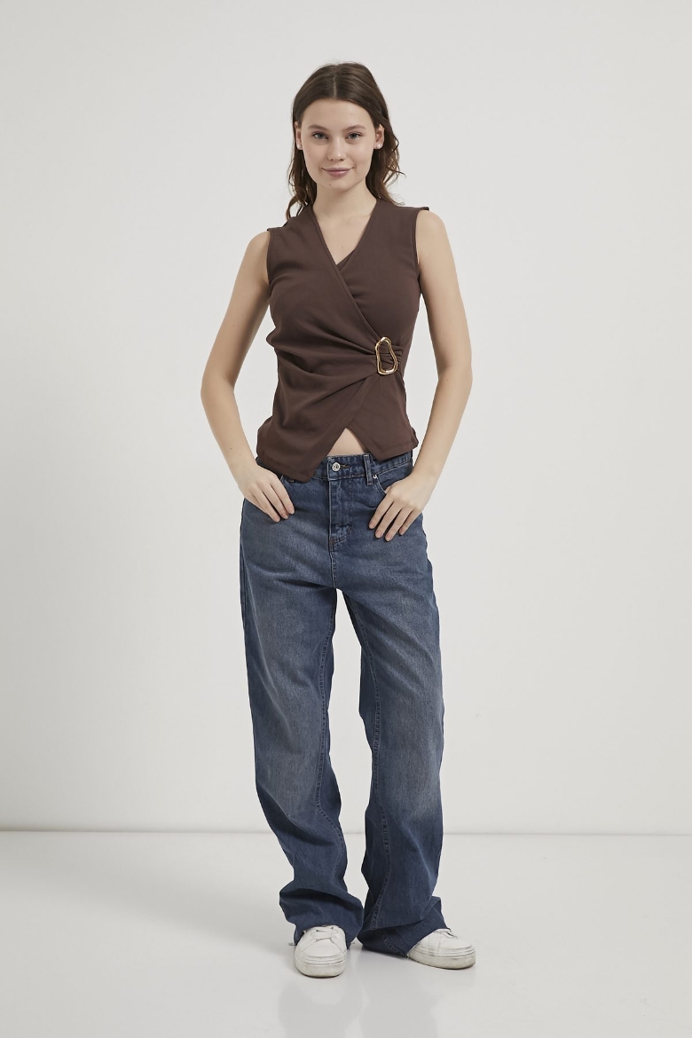 ARMALIFE 6749 KRUVAZE TOKALI SIFIR KOL KADIN BLUZ