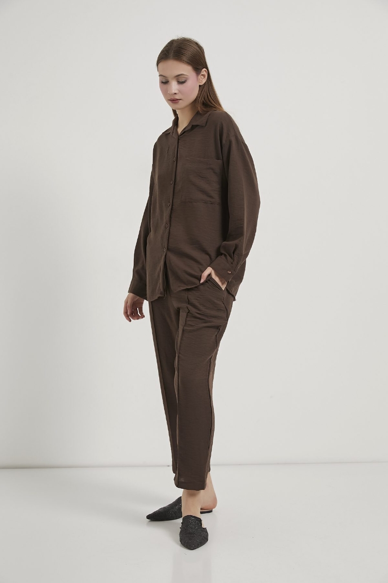 ARMALIFE 6770 KETEN GÖRÜNÜMLÜ GÖMLEK PANTOLON KADIN TAKIM