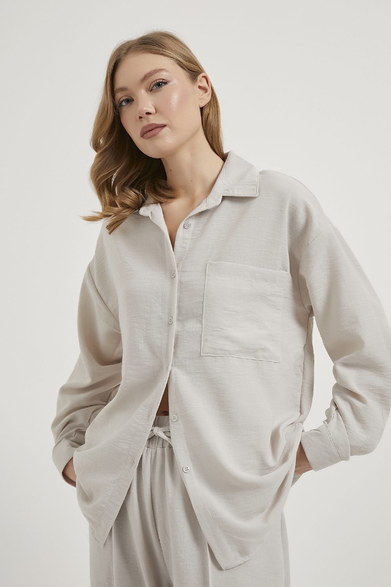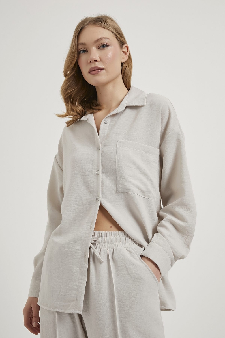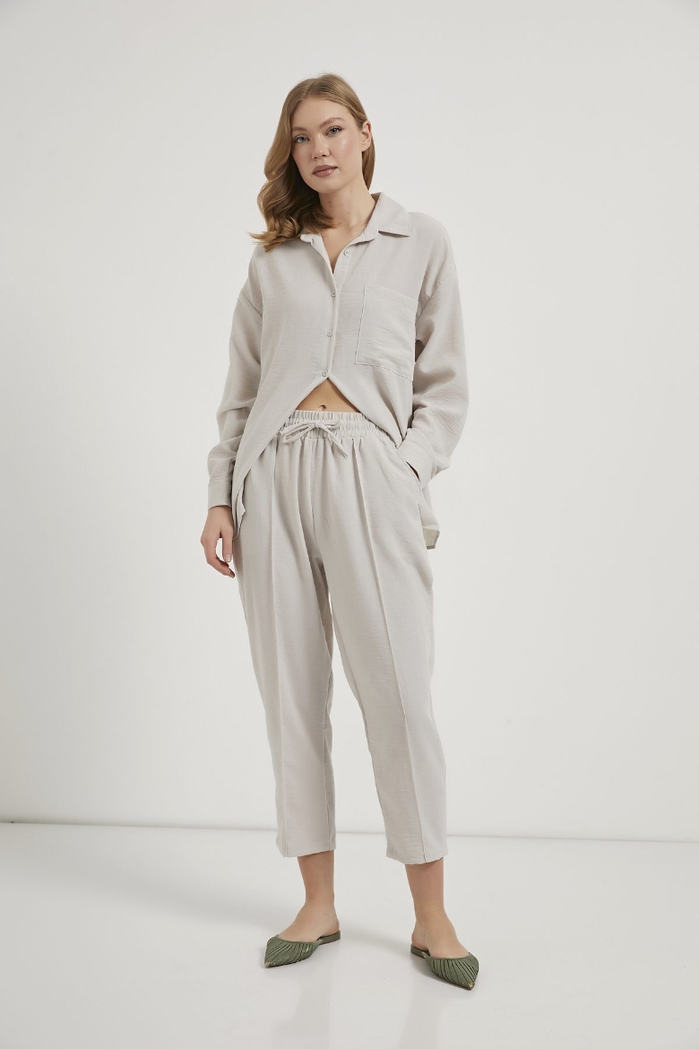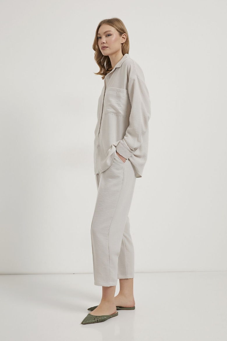ARMALIFE 6770 KETEN GÖRÜNÜMLÜ GÖMLEK PANTOLON KADIN TAKIM
