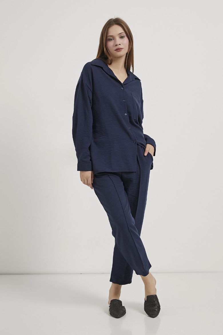 ARMALIFE 6770 KETEN GÖRÜNÜMLÜ GÖMLEK PANTOLON KADIN TAKIM