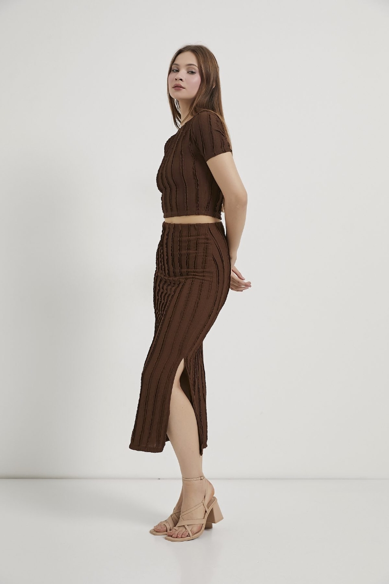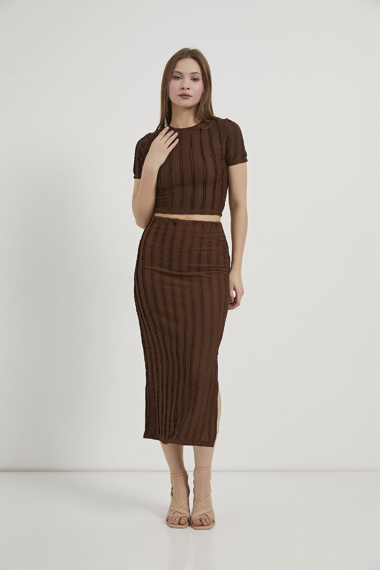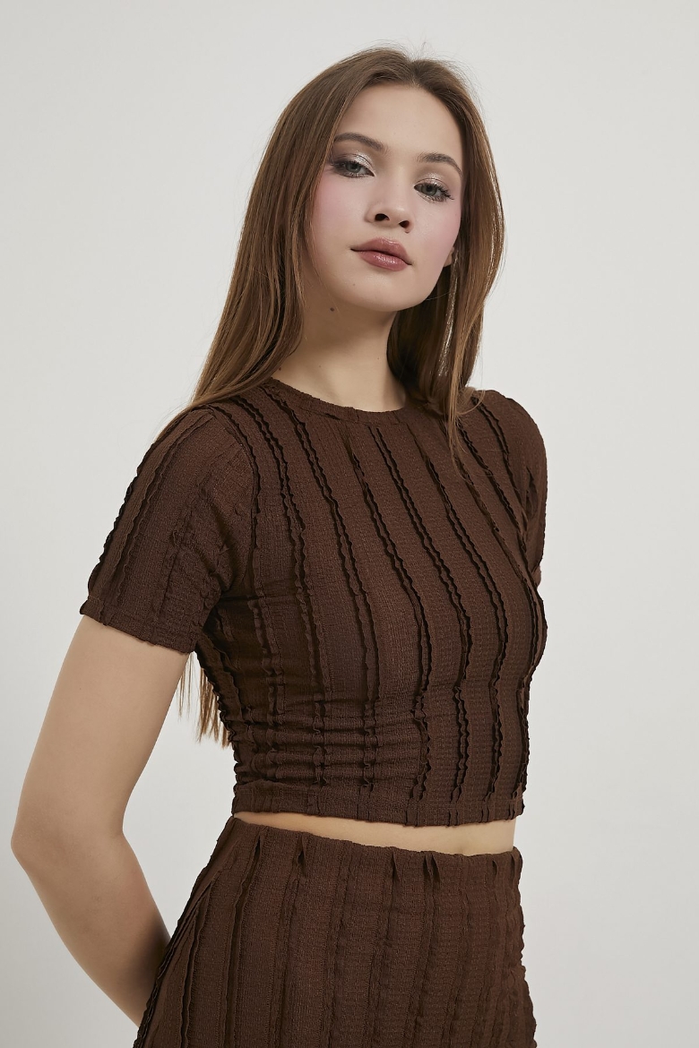 ARMALIFE 6846 DOKULU CROP T-SHIRT ETEK KADIN TAKIM