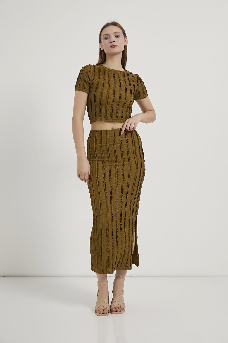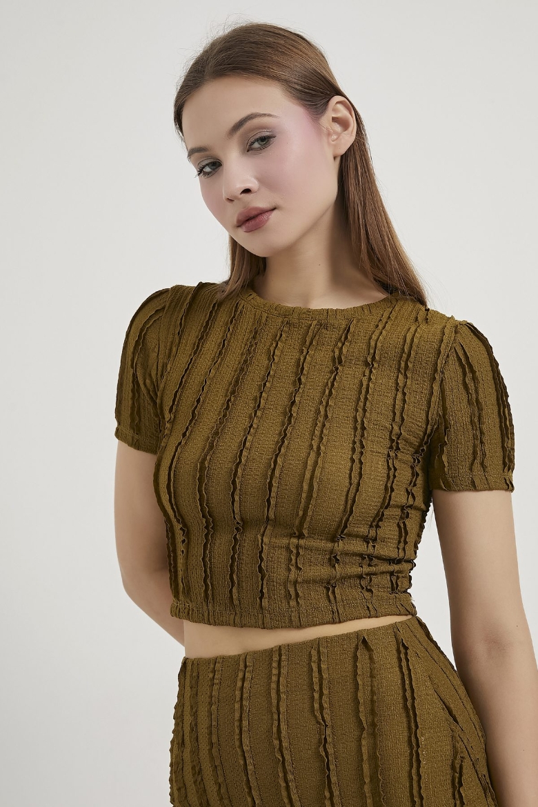 ARMALIFE 6846 DOKULU CROP T-SHIRT ETEK KADIN TAKIM