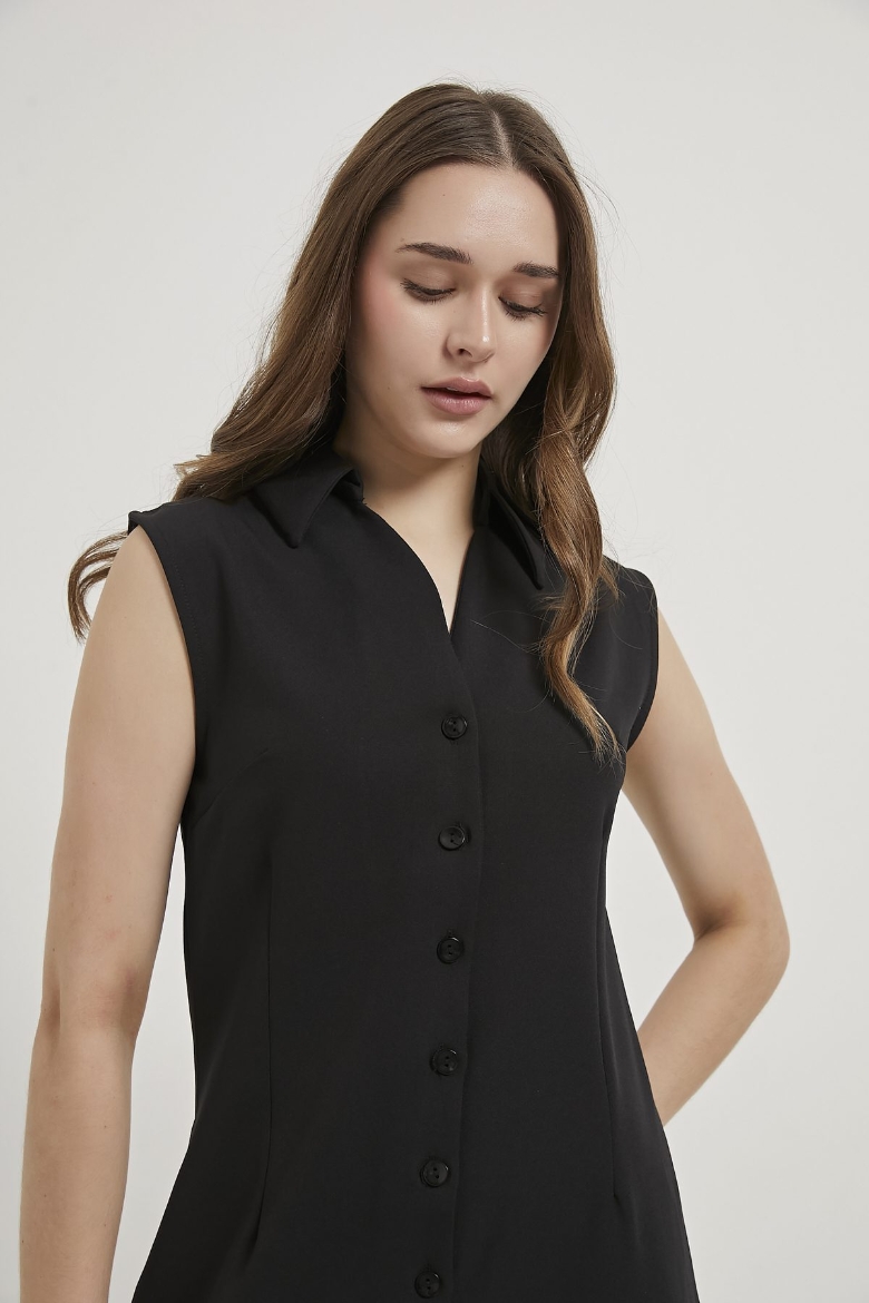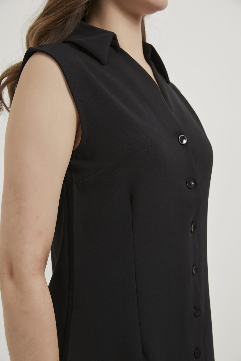 ARMALIFE 6875 YAKALI DÜĞMELİ KOLSUZ KADIN ELBİSE