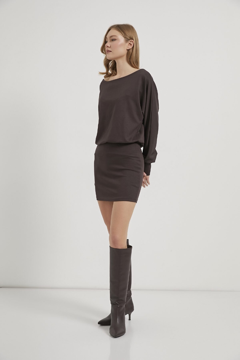 ARMALIFE 6908 DÜŞÜK OMUZ MİNİ ÖRME KADIN ELBİSE