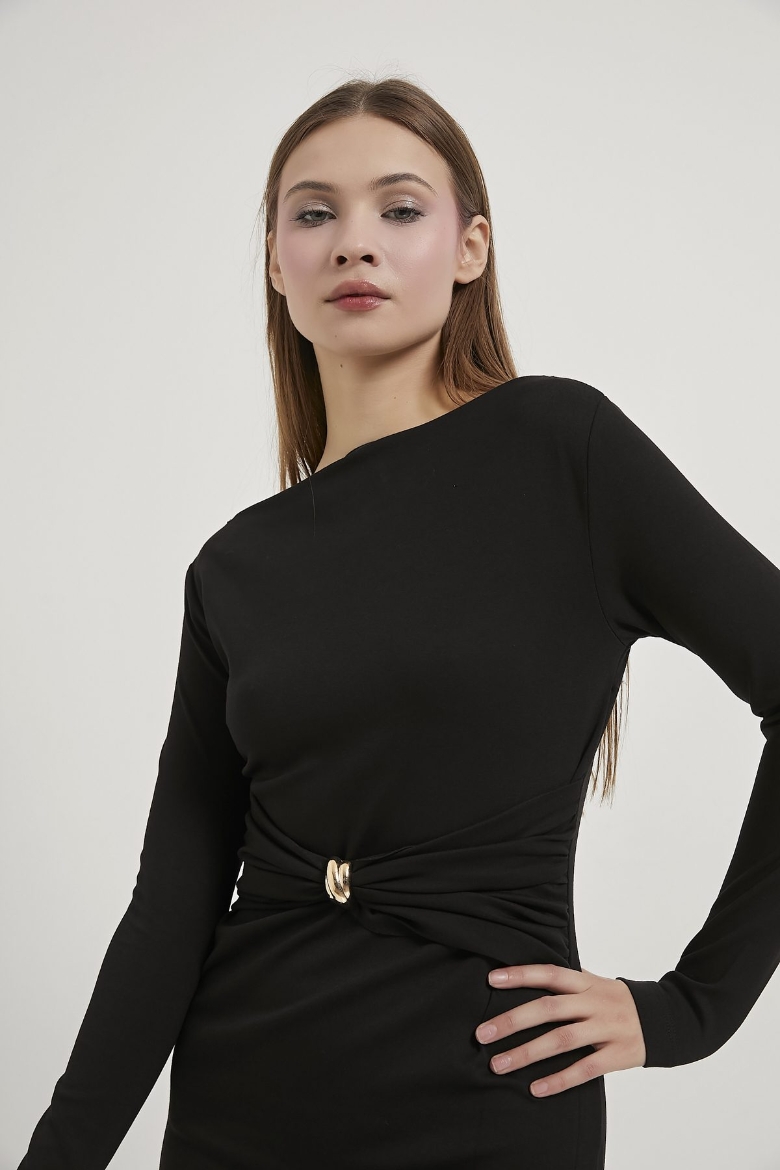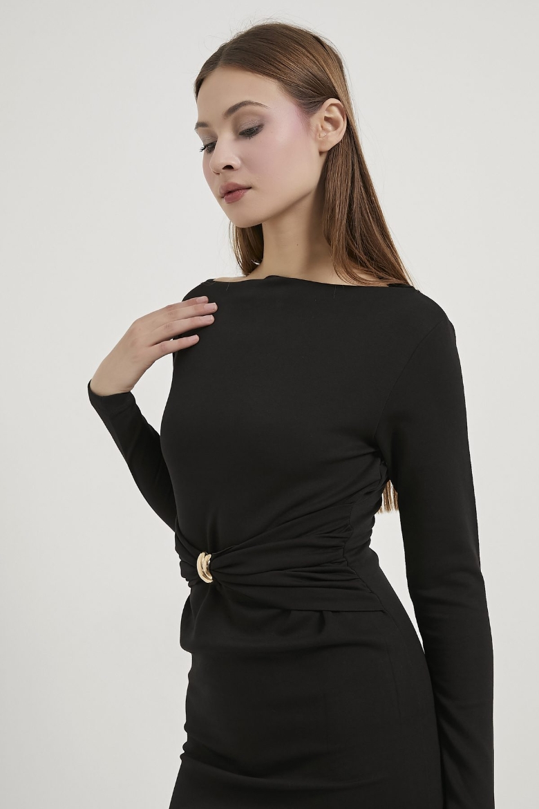ARMALIFE 6911 KAYIK YAKA BEL BÜZGÜ KEMER DETAYLI MİNİ KADIN ELBİSE