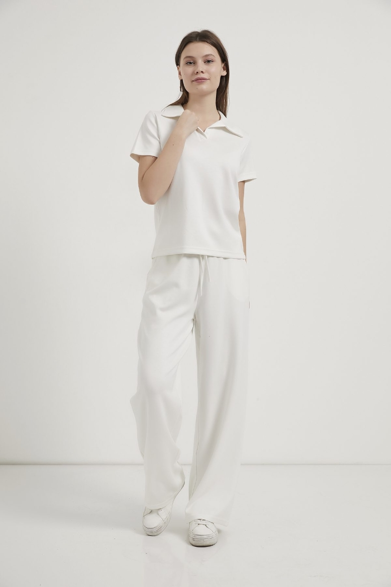 ARMALIFE 6946 YAKALI T-SHIRT BEL BAĞLAMA DETAYLI EŞOFMAN ALTI KADIN TAKIM