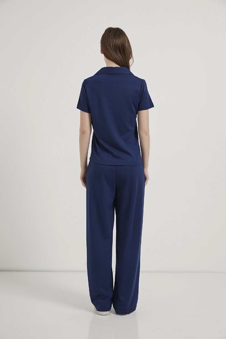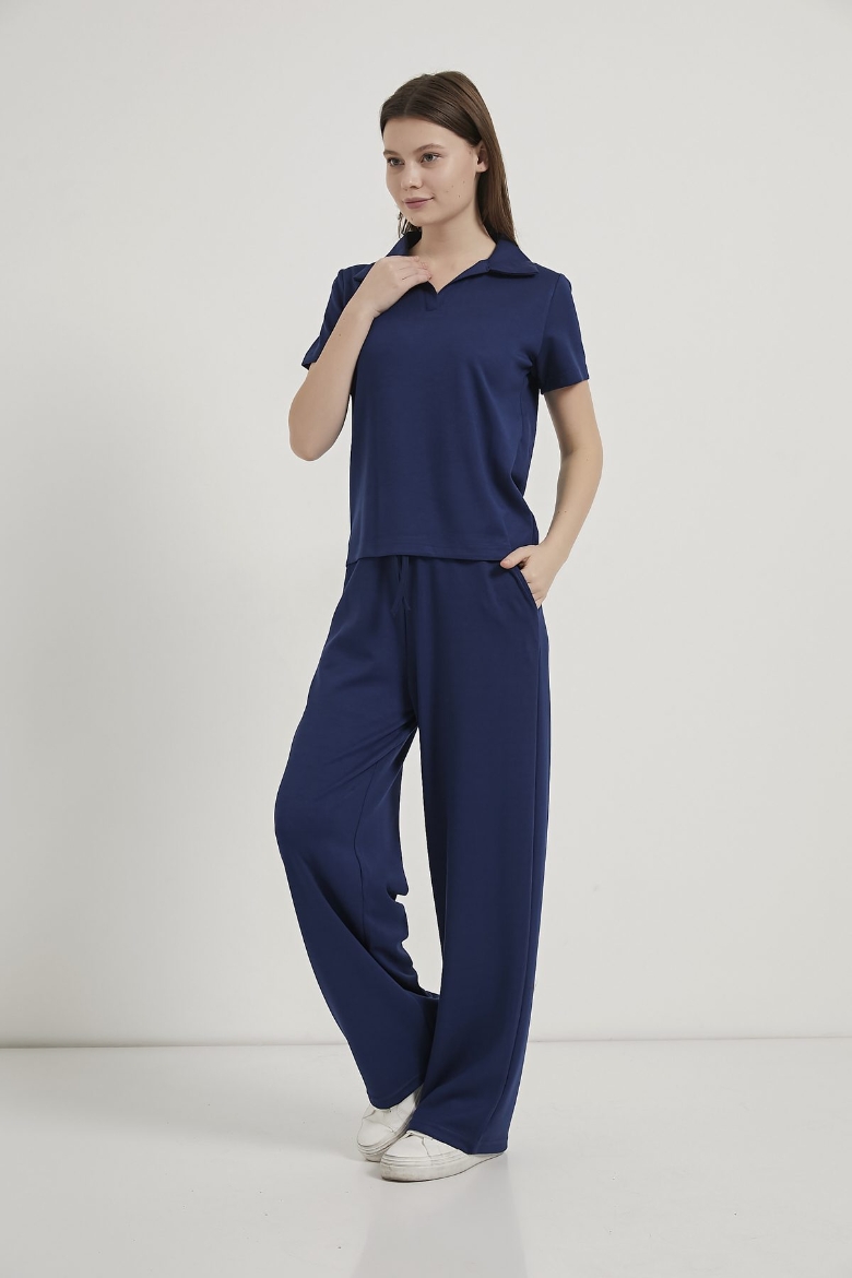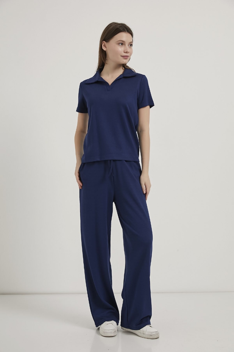 ARMALIFE 6946 YAKALI T-SHIRT BEL BAĞLAMA DETAYLI EŞOFMAN ALTI KADIN TAKIM