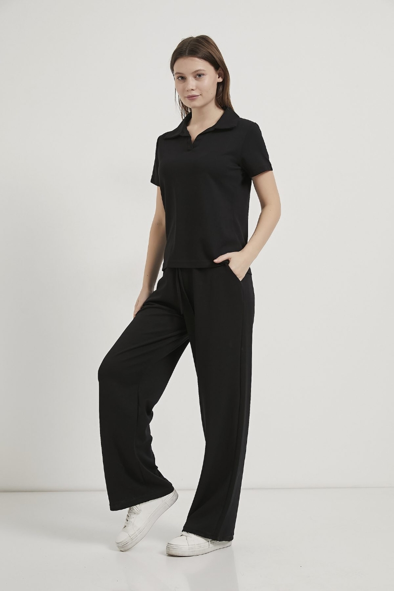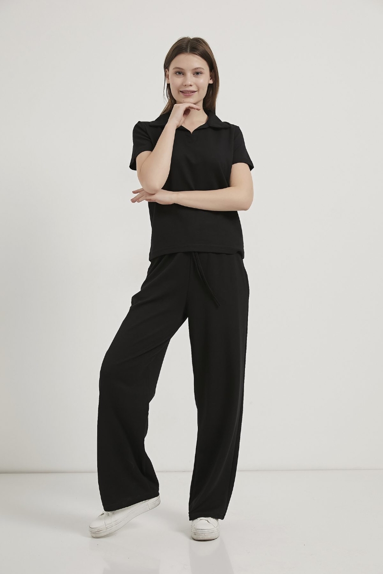 ARMALIFE 6946 YAKALI T-SHIRT BEL BAĞLAMA DETAYLI EŞOFMAN ALTI KADIN TAKIM