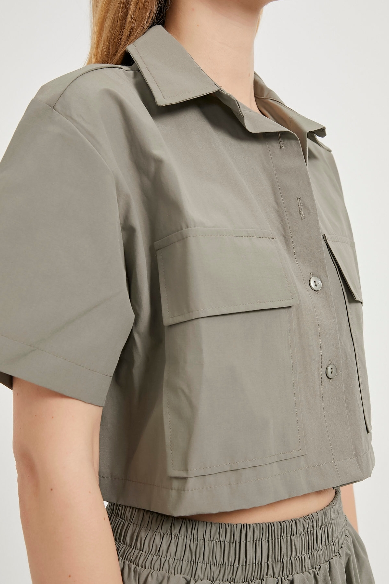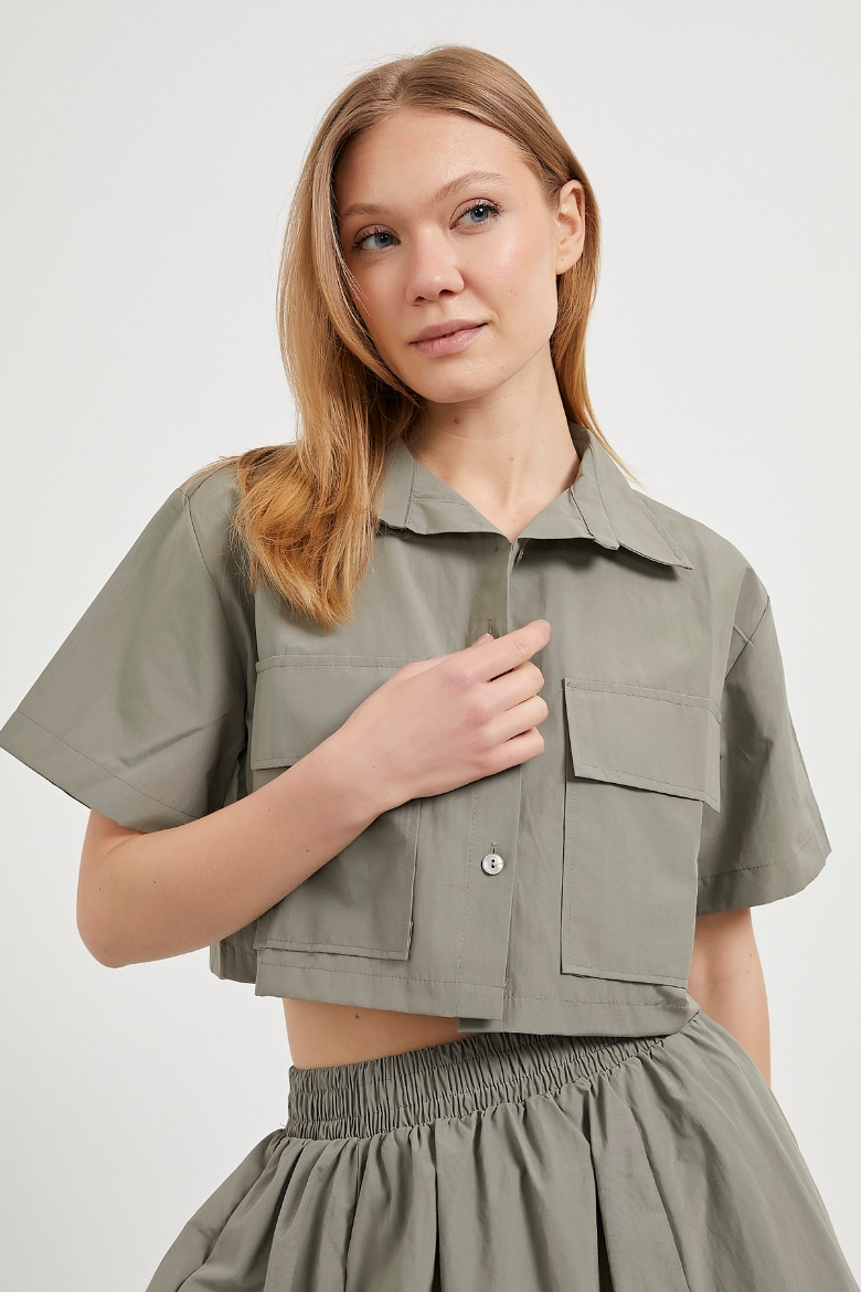 ARMALIFE 7037 CEP DETAYLI KISA KOL CROP KADIN GÖMLEK