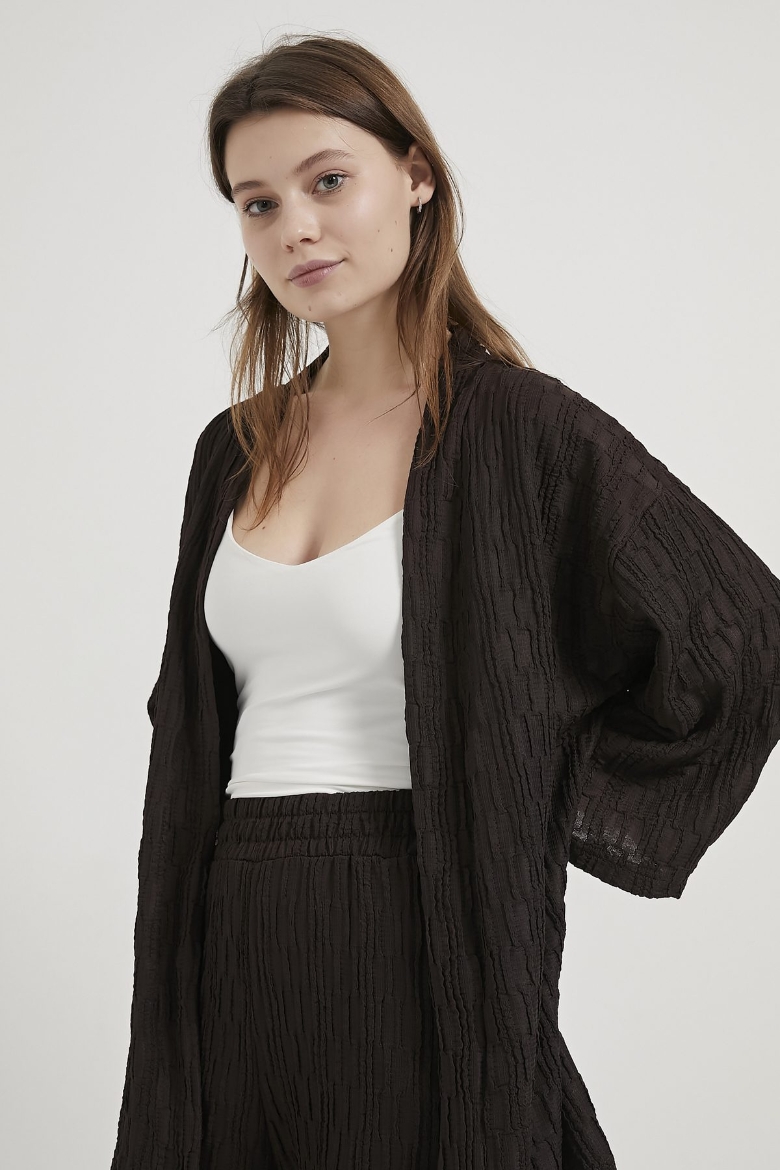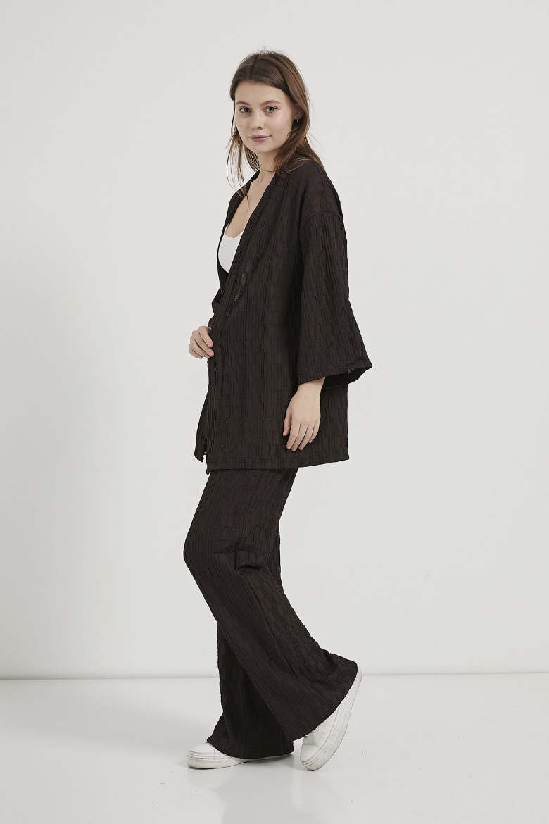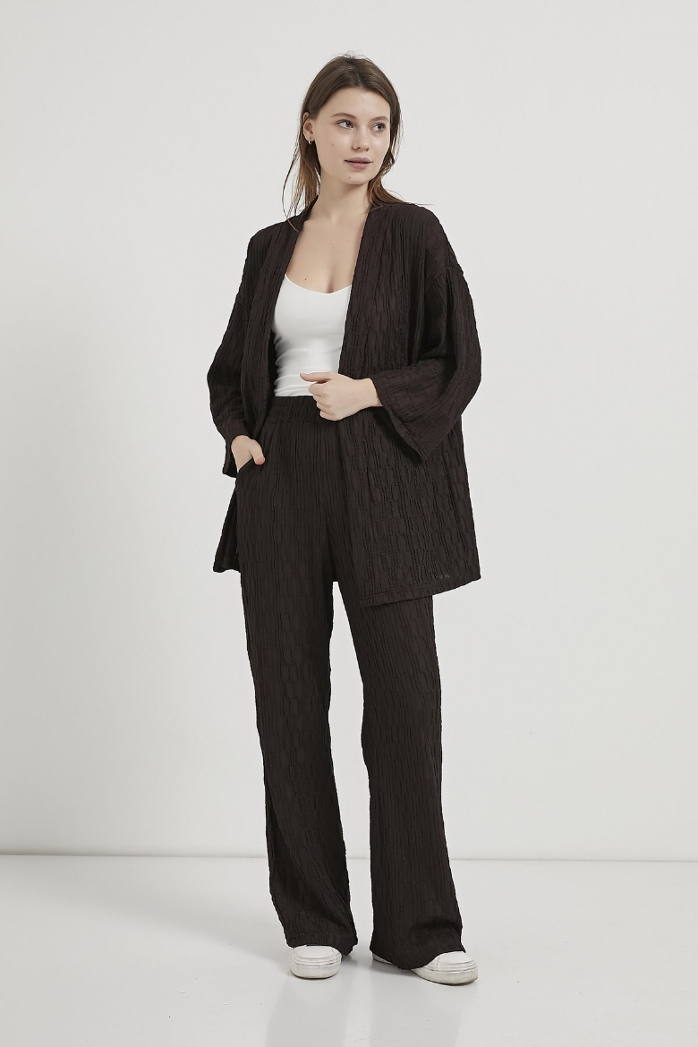 ARMALIFE 7068 DOKULU BELİ LASTİKLİ PANTOLON - KİMONO KADIN TAKIM