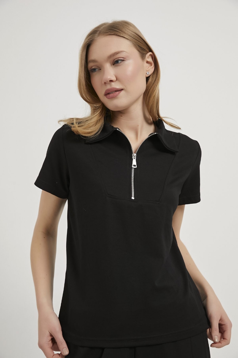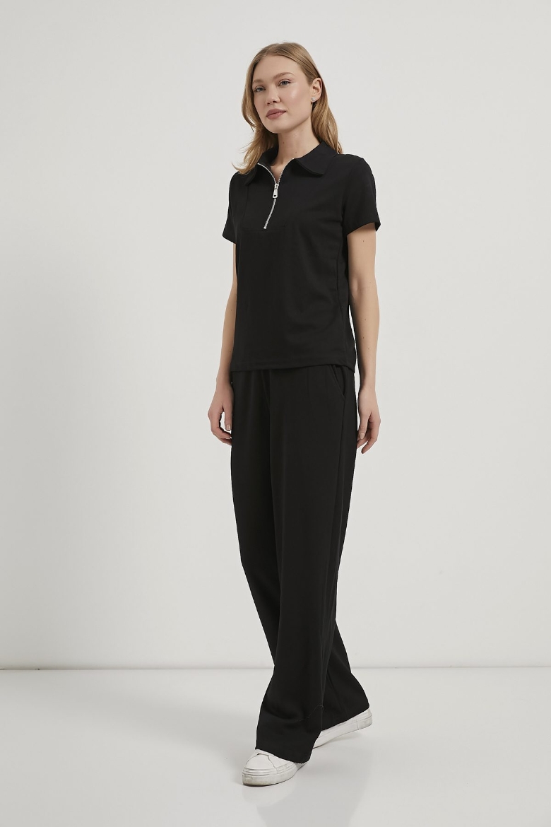ARMALIFE 7077 YAKA FERMUAR DETAY BLUZ BELİ LASTİKLİ EŞOFMAN ALTI KADIN TAKIM