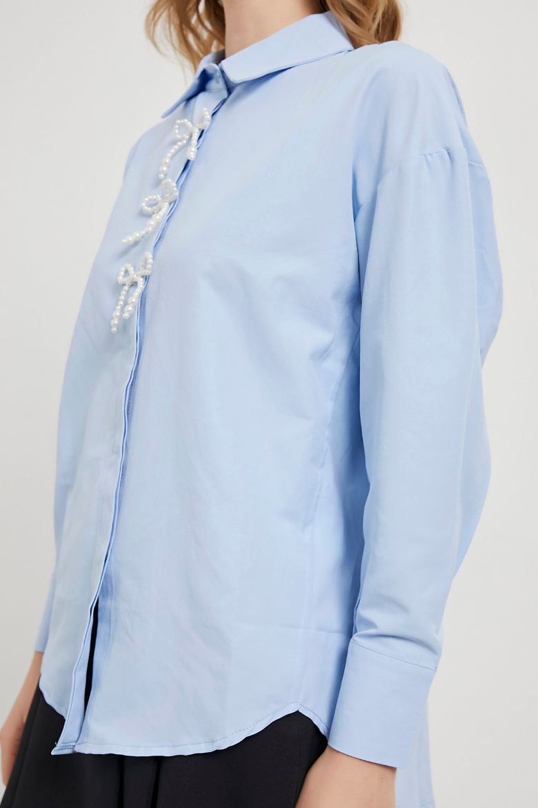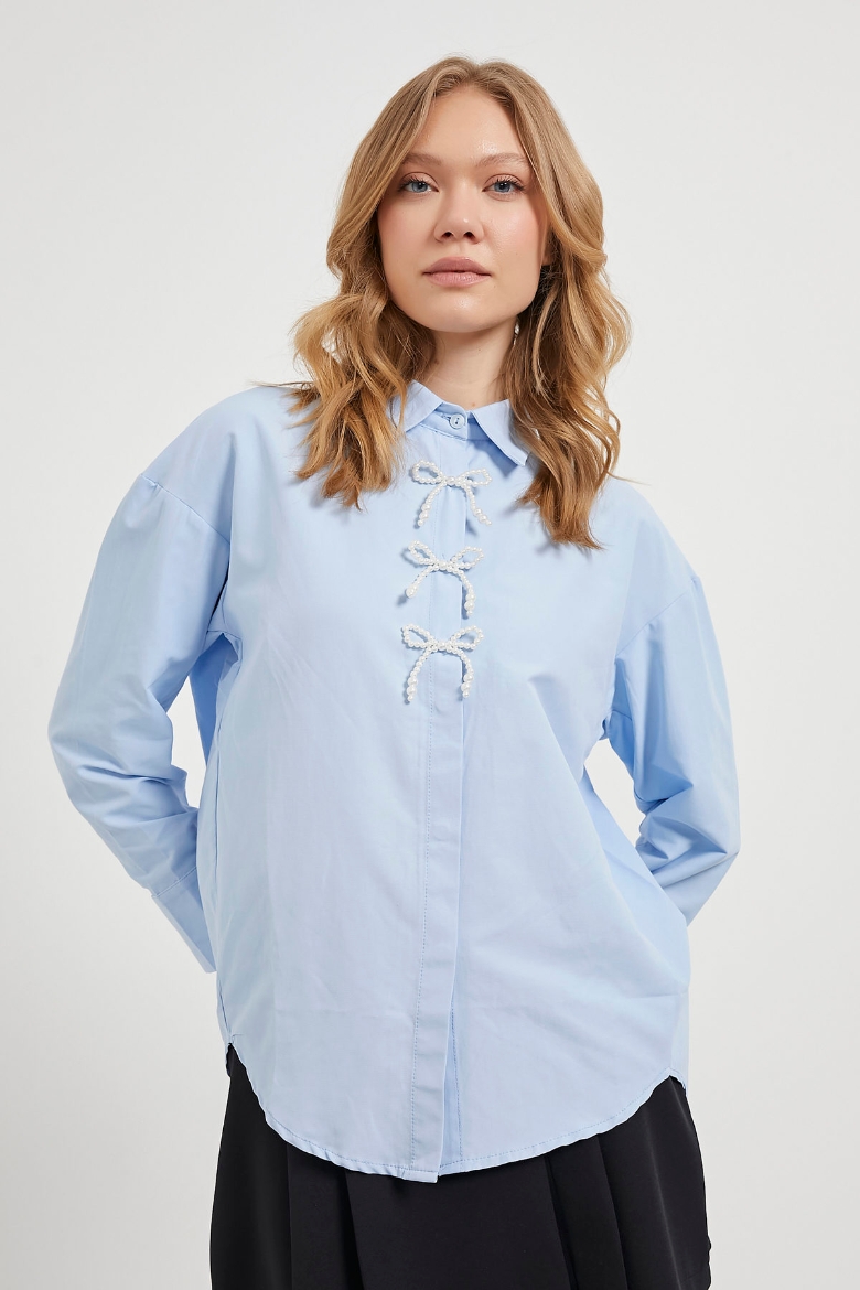 ARMALIFE 71594 İNCİ FİYONK AKSESUARLI KADIN GÖMLEK