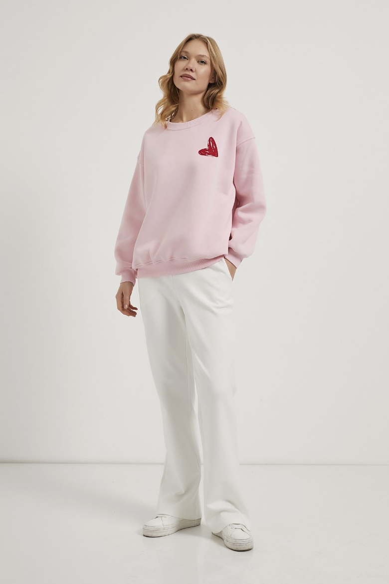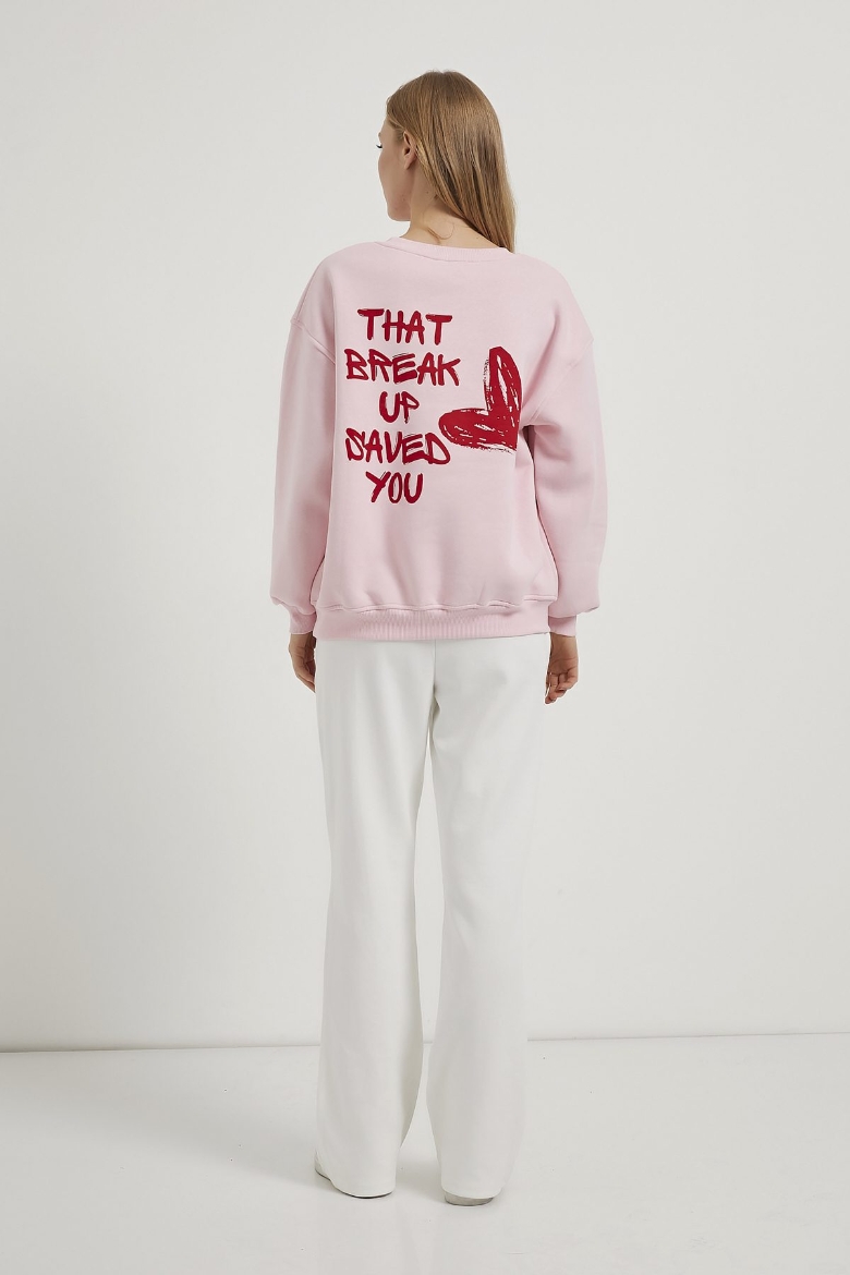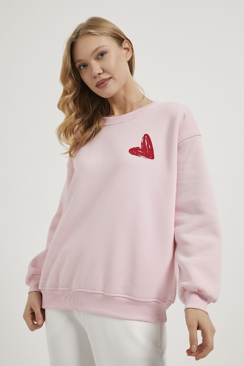 ARMALIFE 7251 KALP BASKILI BİS YAKA KADIN SWEAT