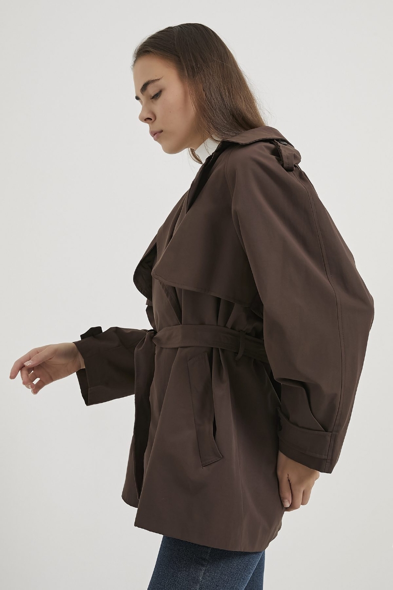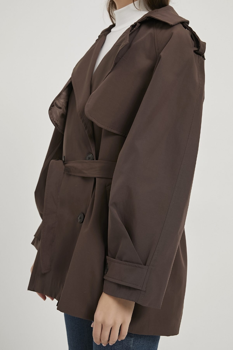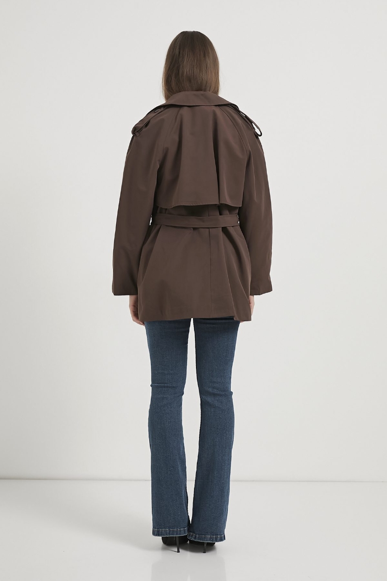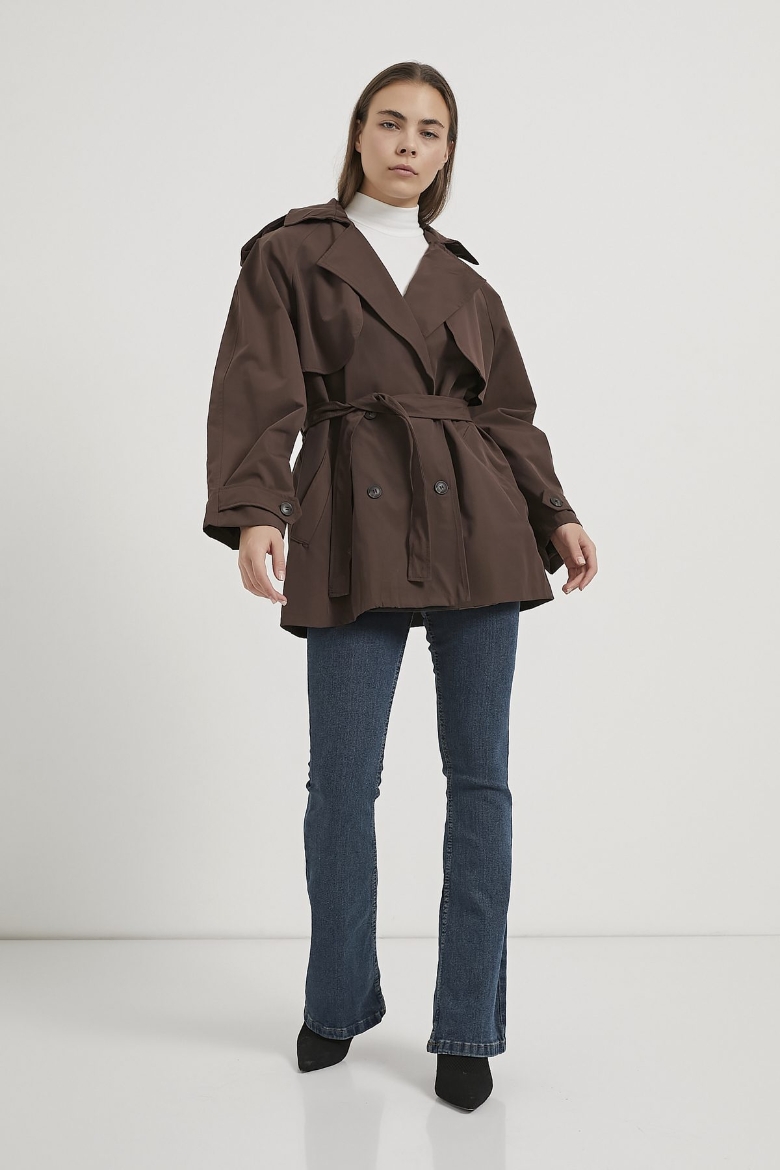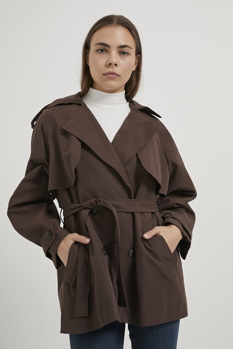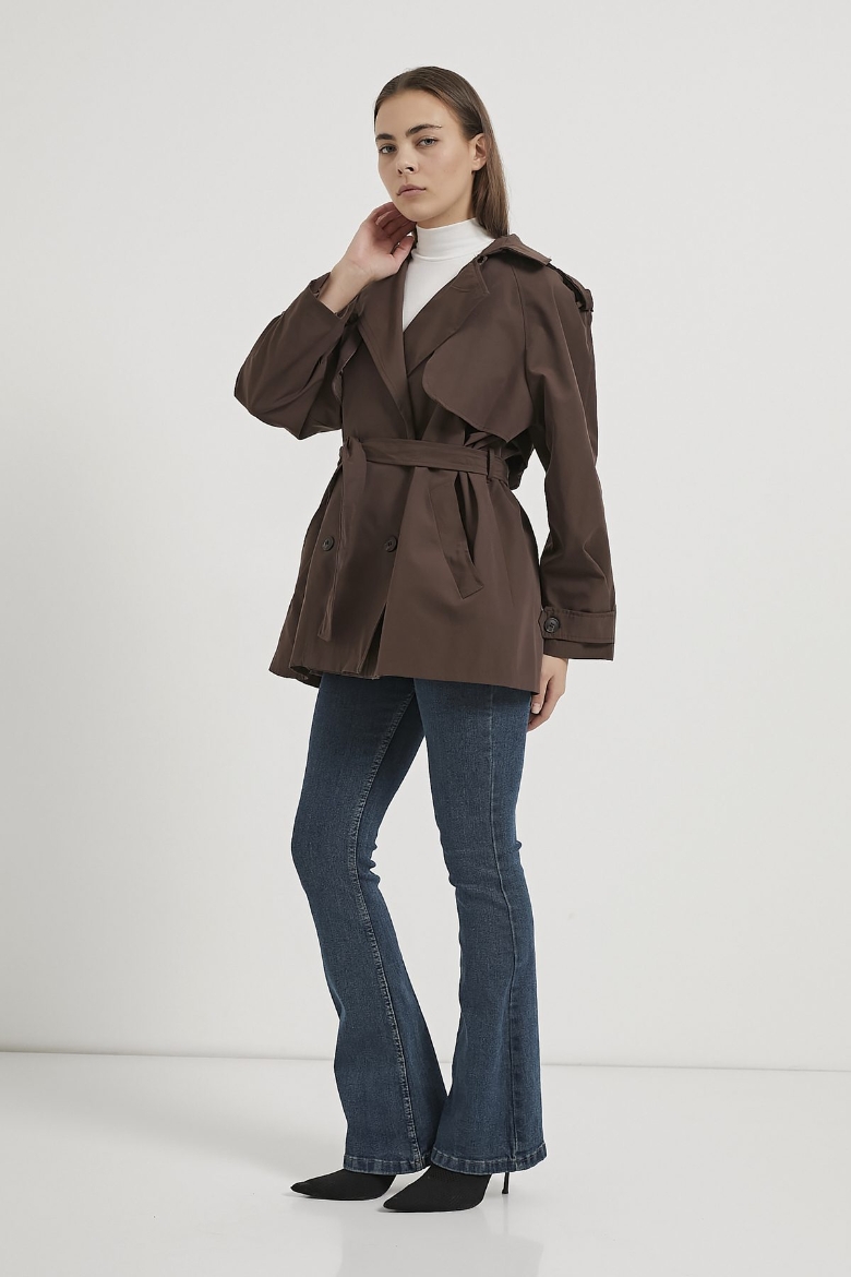 ARMALIFE 7556 KEMERLİ APOLET DETAYLI PREMIUM KISA KADIN TRENÇKOT