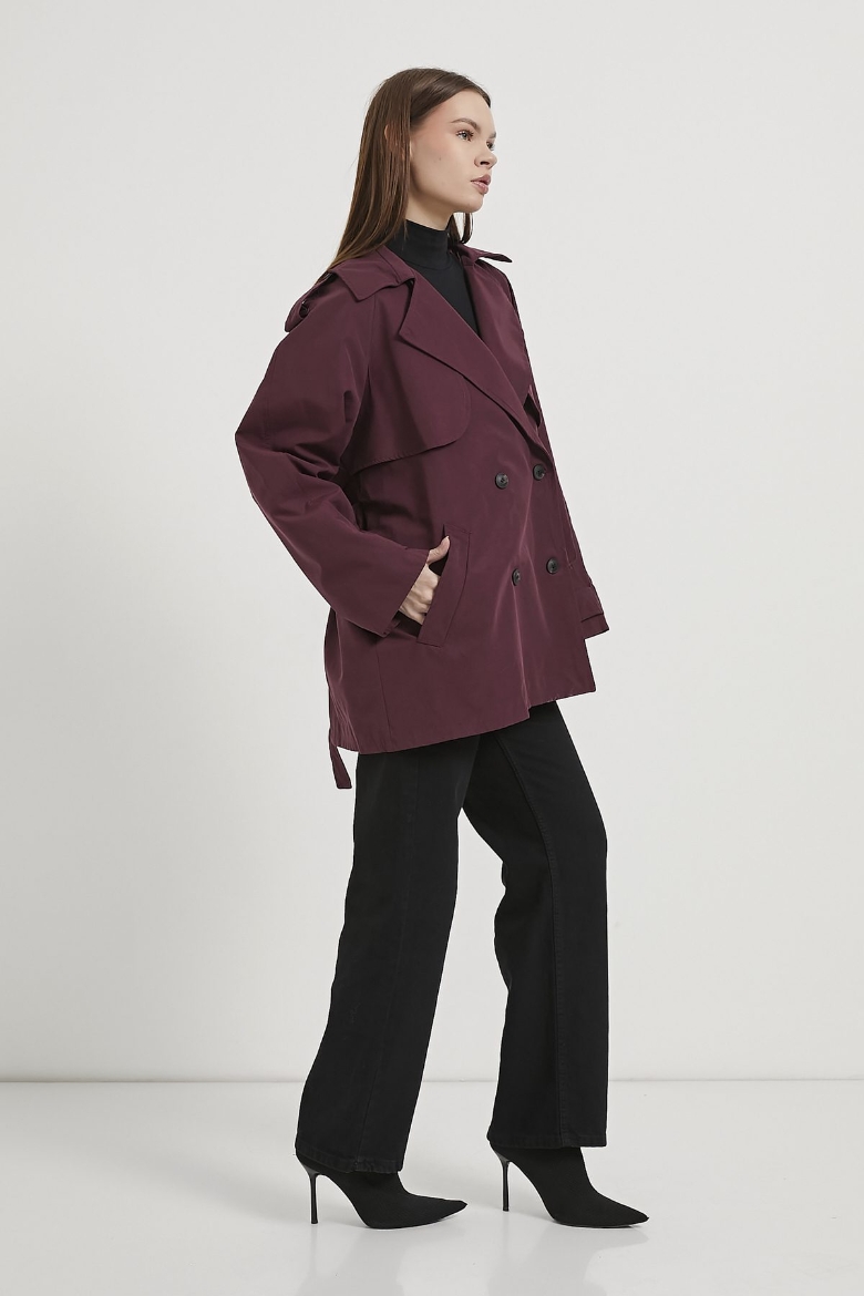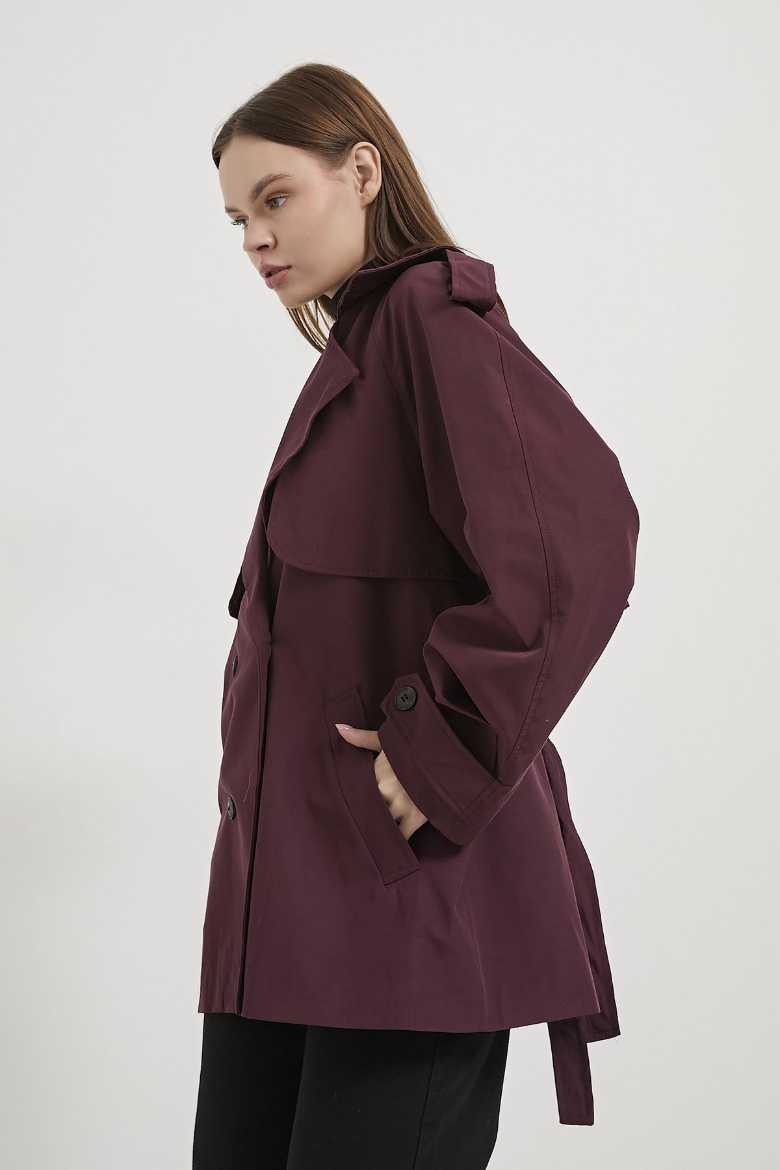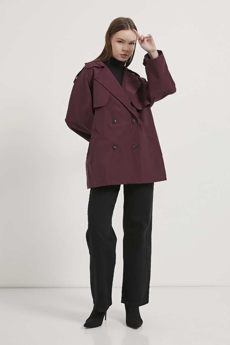 ARMALIFE 7556 KEMERLİ APOLET DETAYLI PREMIUM KISA KADIN TRENÇKOT