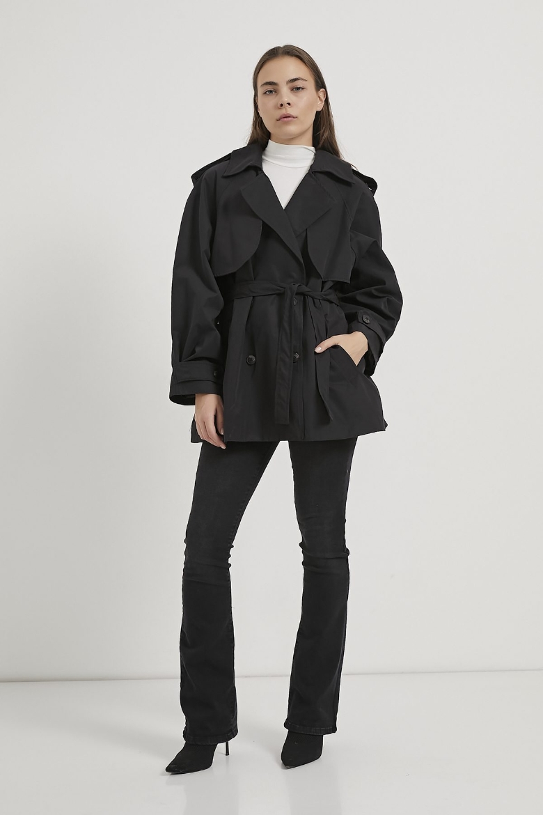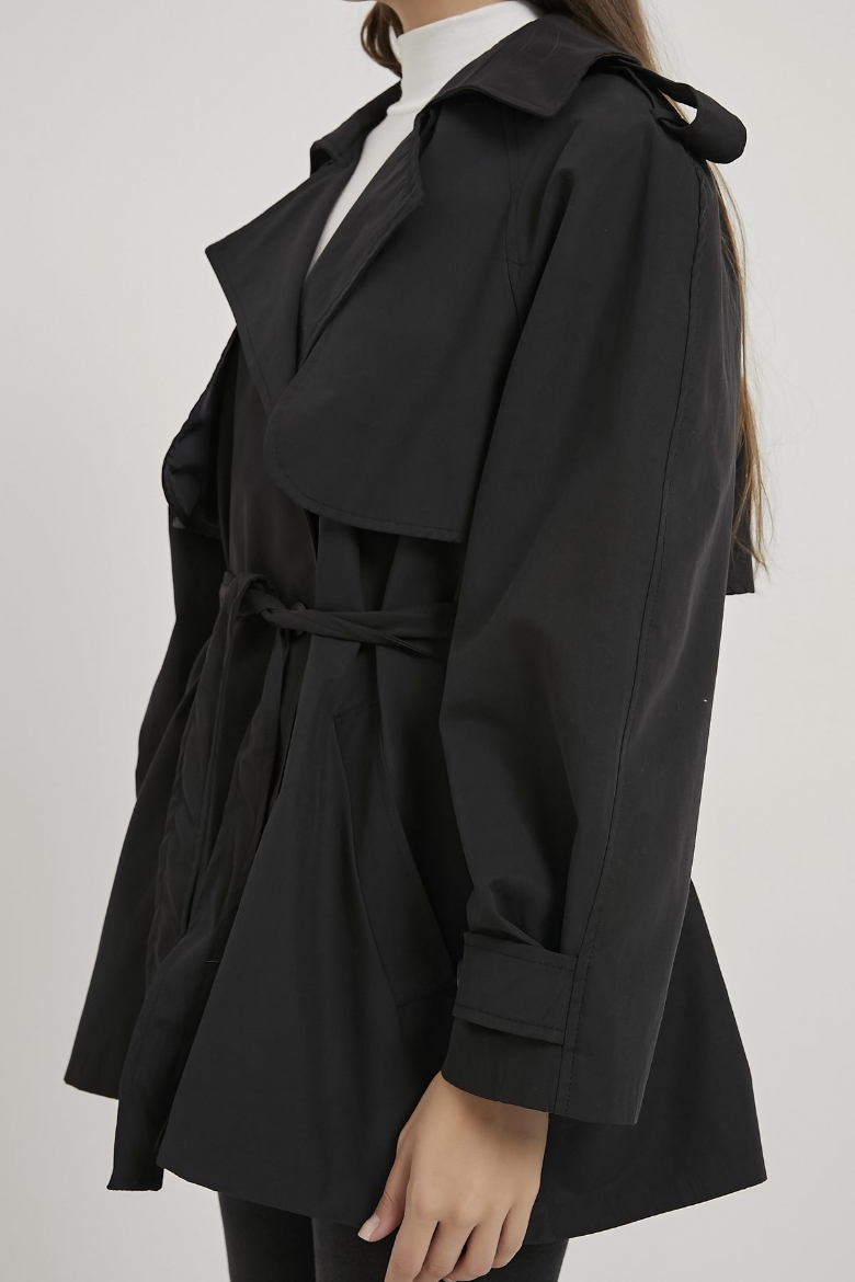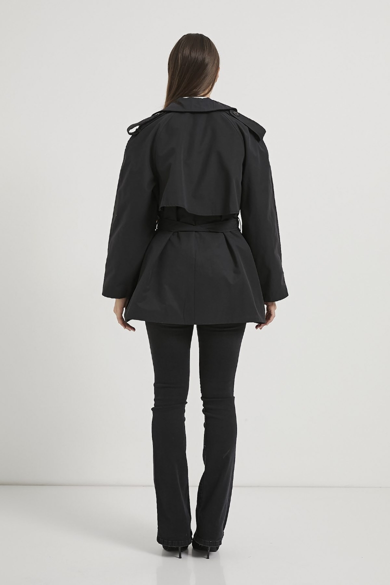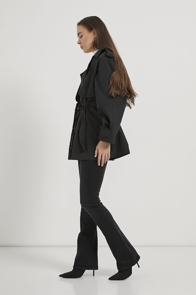 ARMALIFE 7556 KEMERLİ APOLET DETAYLI PREMIUM KISA KADIN TRENÇKOT