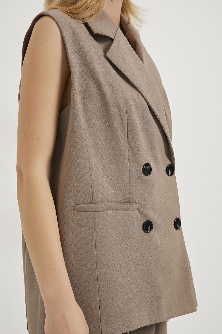 ARMALIFE 7587 DÜĞMELİ CEKET YAKA UZUN KADIN YELEK