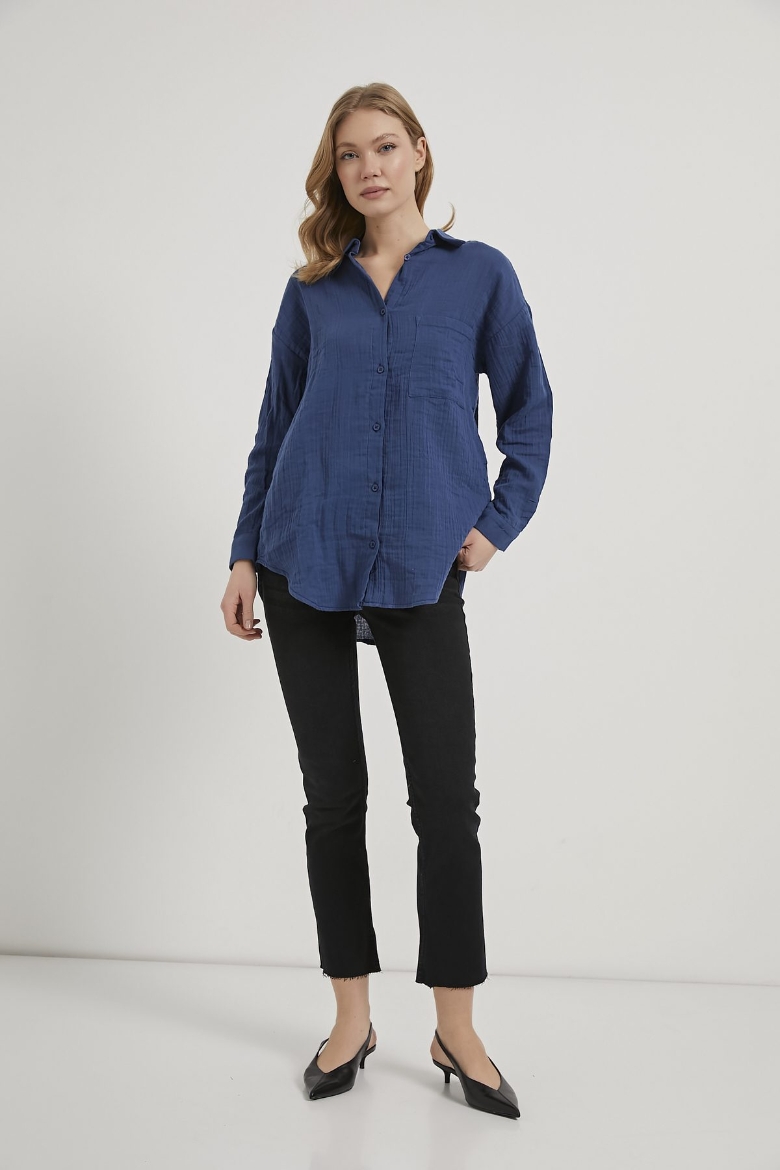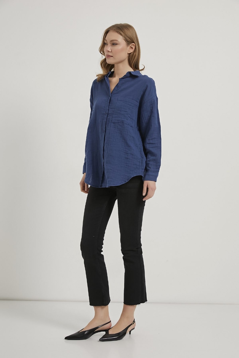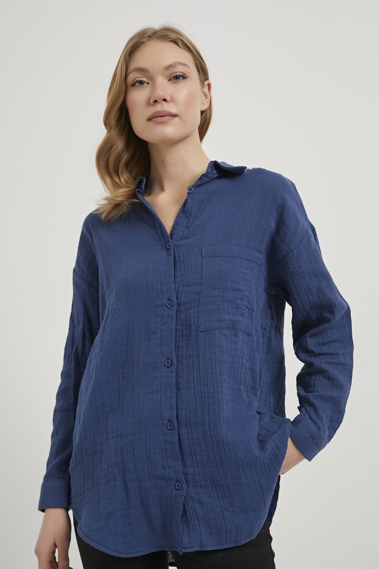 ARMALIFE 7593 CEPLİ MÜSLİN KADIN GÖMLEK