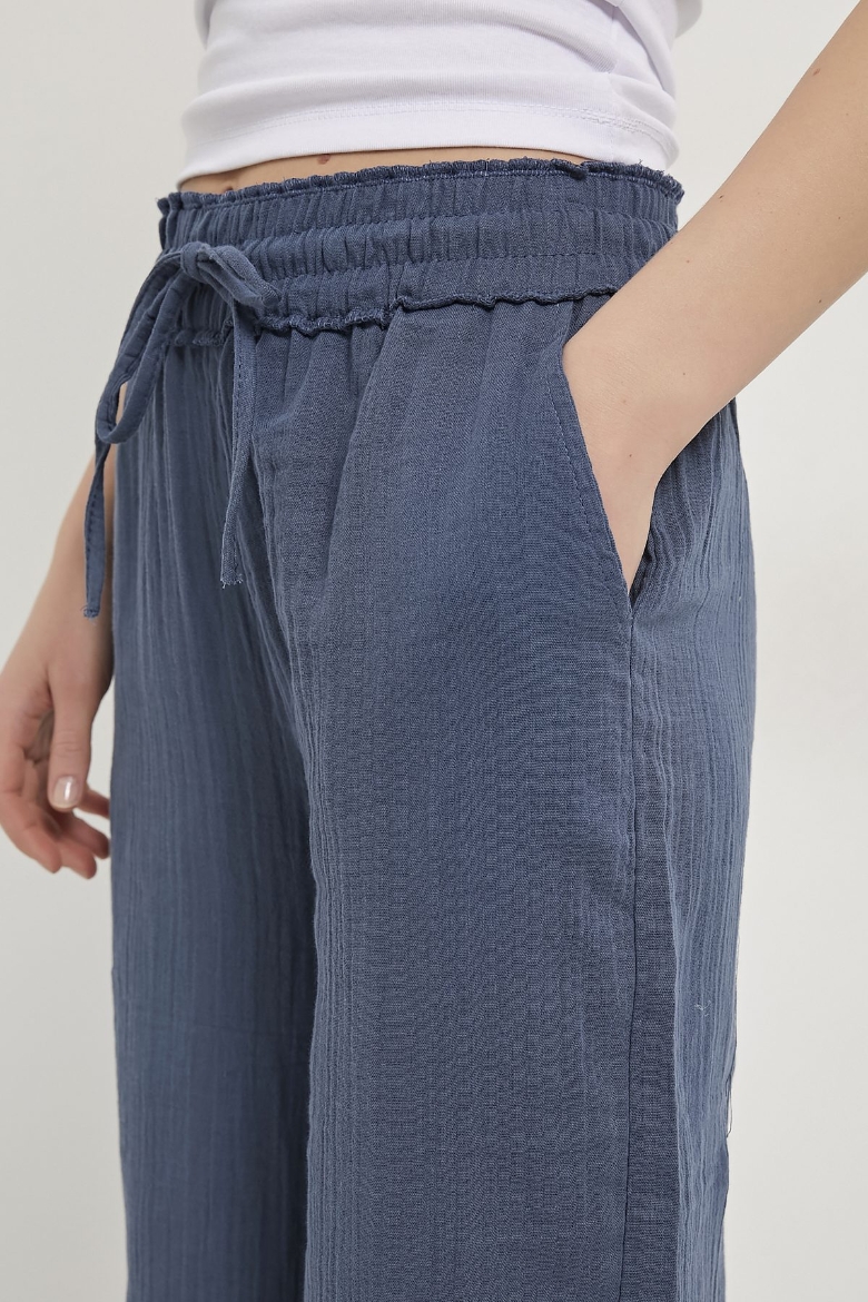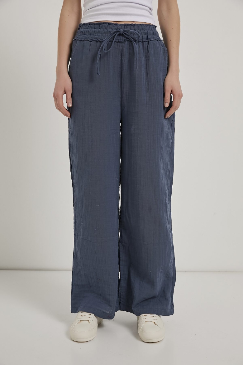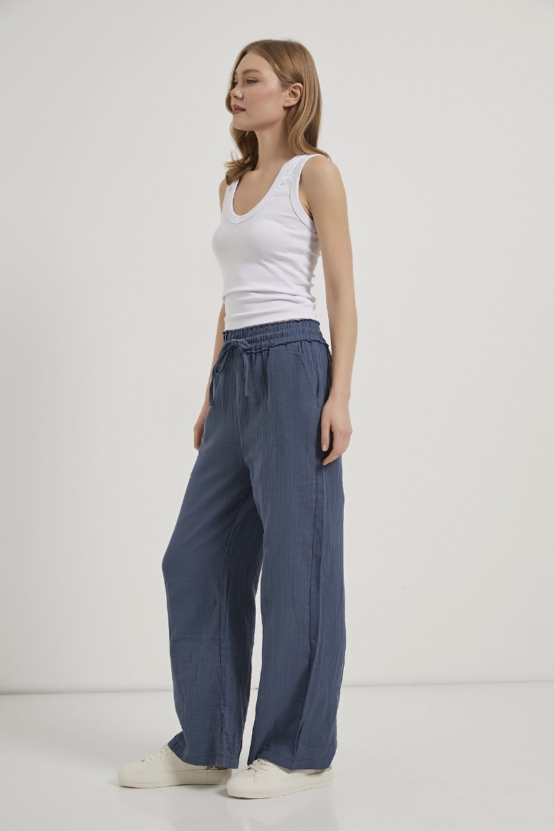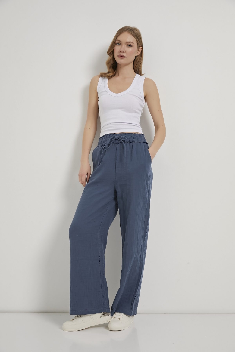 ARMALIFE 7604 BELİ LASTİK DETAYLI BAĞCIKLI MÜSLİN KADIN PANTOLON