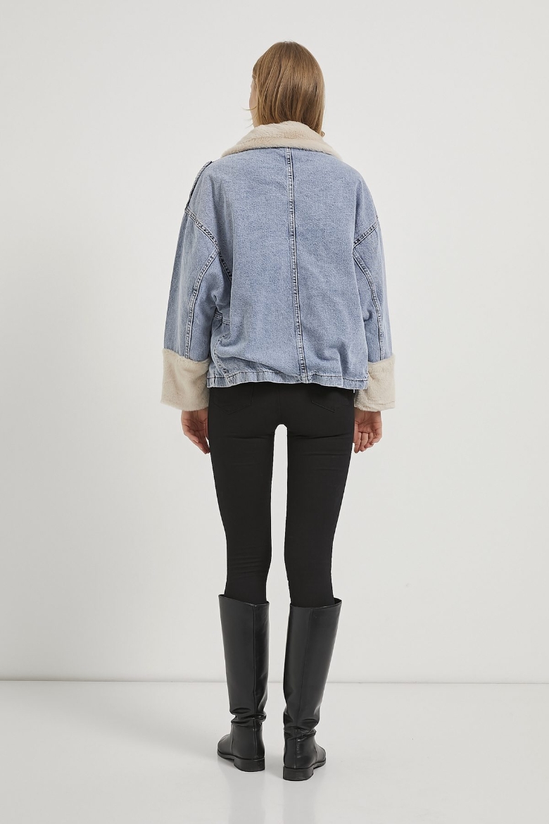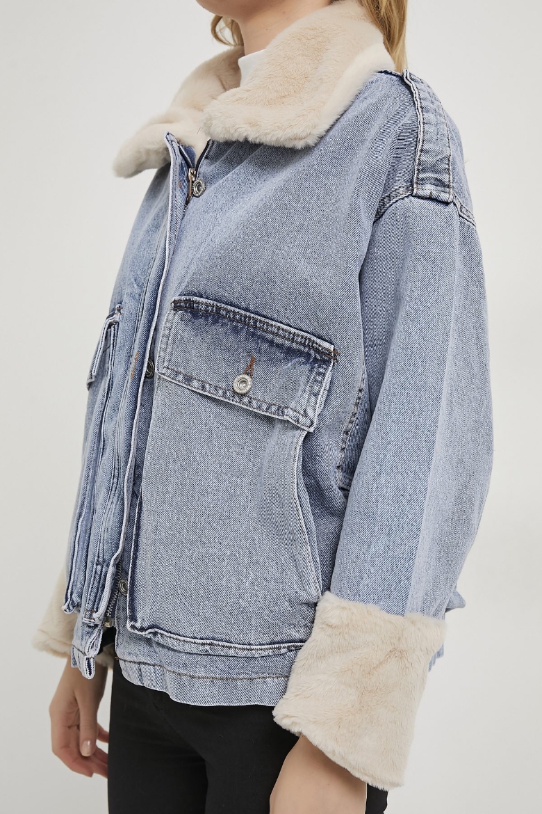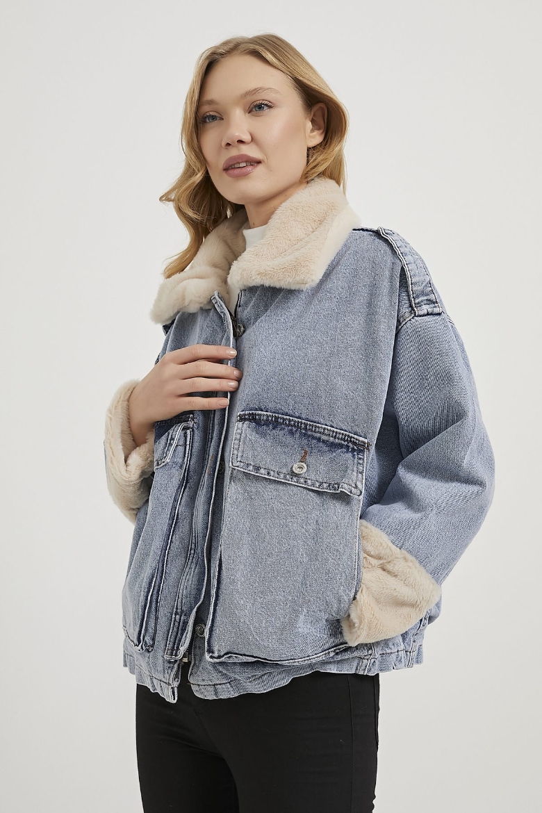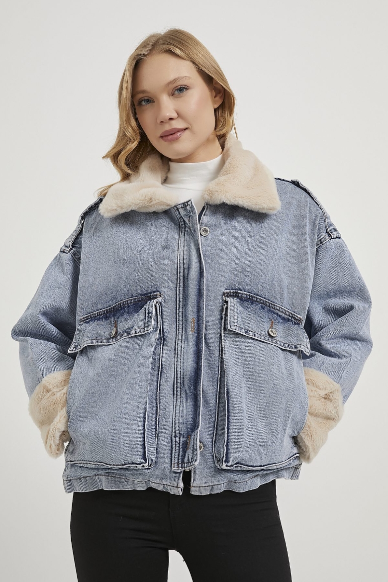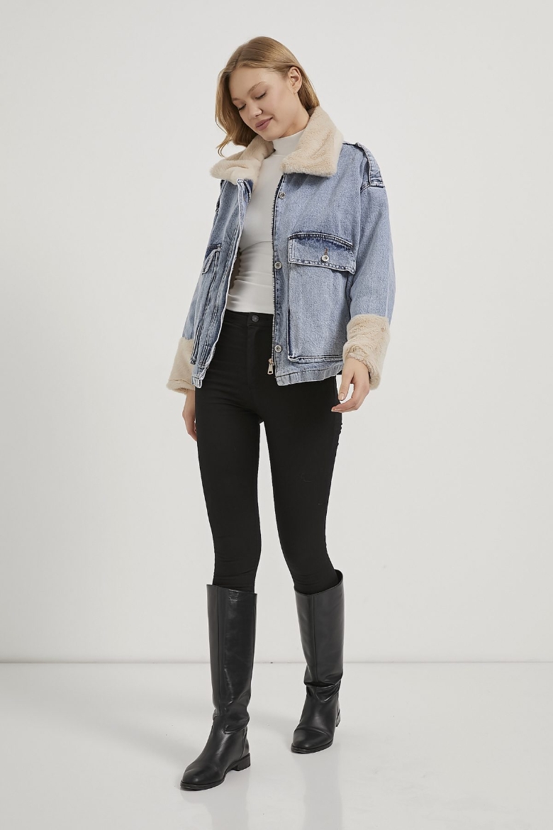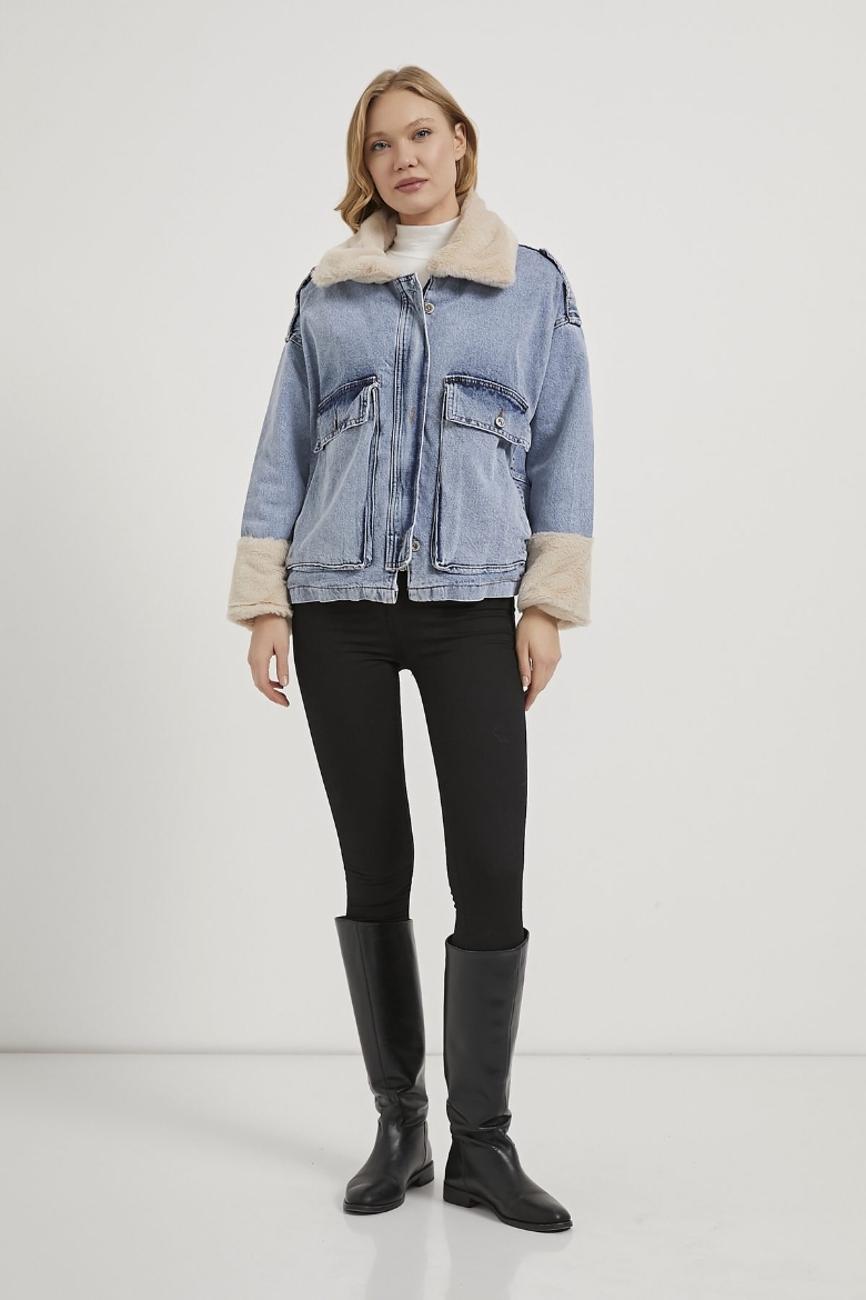 ARMALIFE 7861 PELUŞ DETAYLI DENİM KADIN MONT