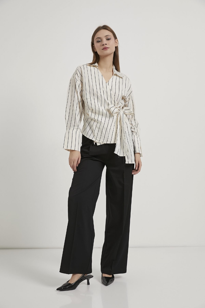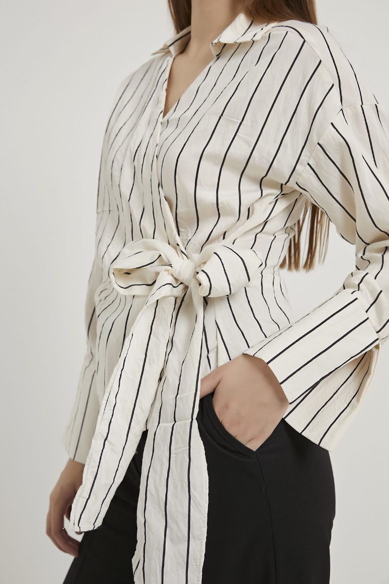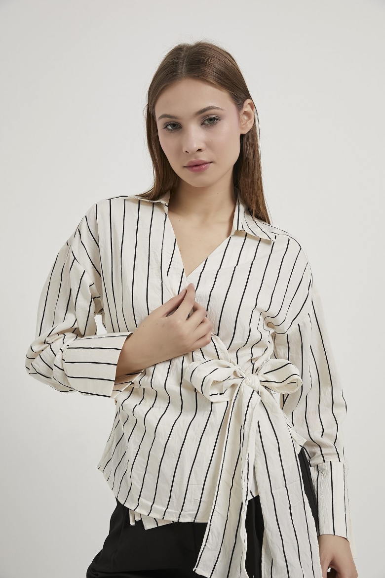 ARMALIFE 8027 YANI BAĞLAMALI ÇİZGİLİ KADIN GÖMLEK