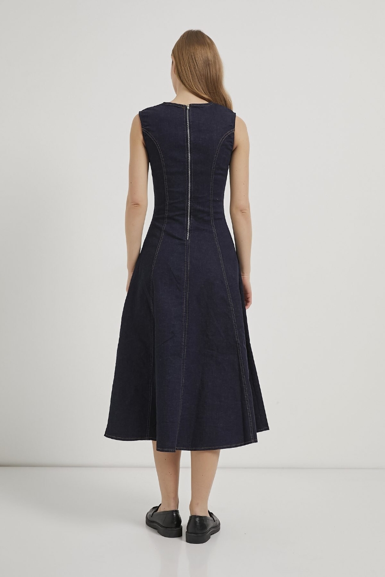 ARMALIFE 8051 ETEĞİ KLOŞ KOLSUZ MAXI ESNEK DENİM KADIN ELBİSE