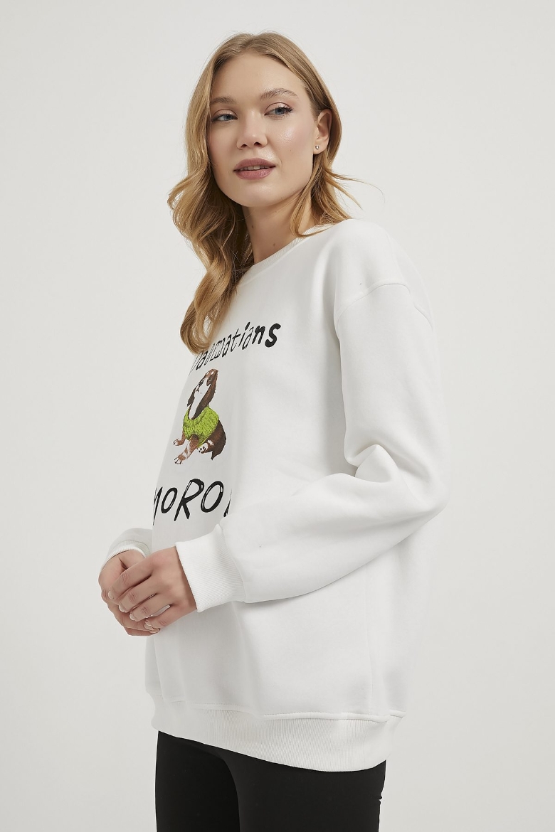 ARMALIFE 8494 BİS YAKA BASKILI KADIN SWEAT