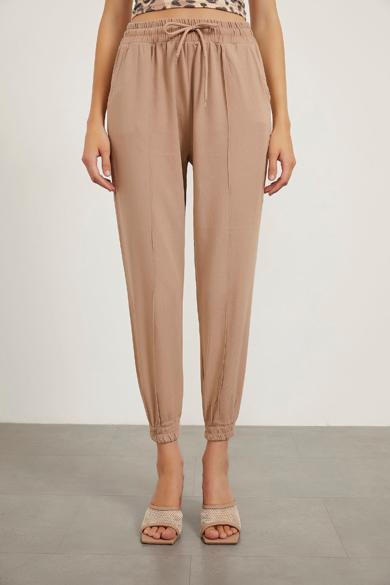 Bel Paça Lastikli Çimalı Gabardin Pantolon