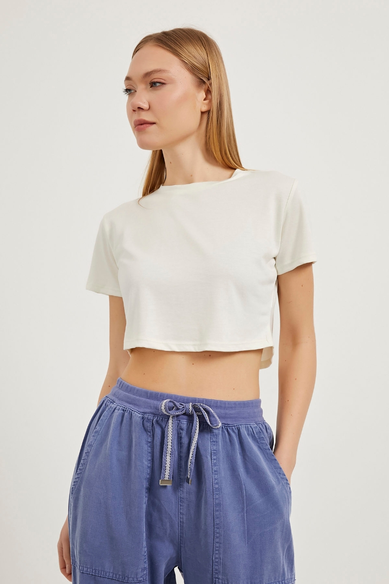 Bisiklet Yaka Crop Soft T-Shirt