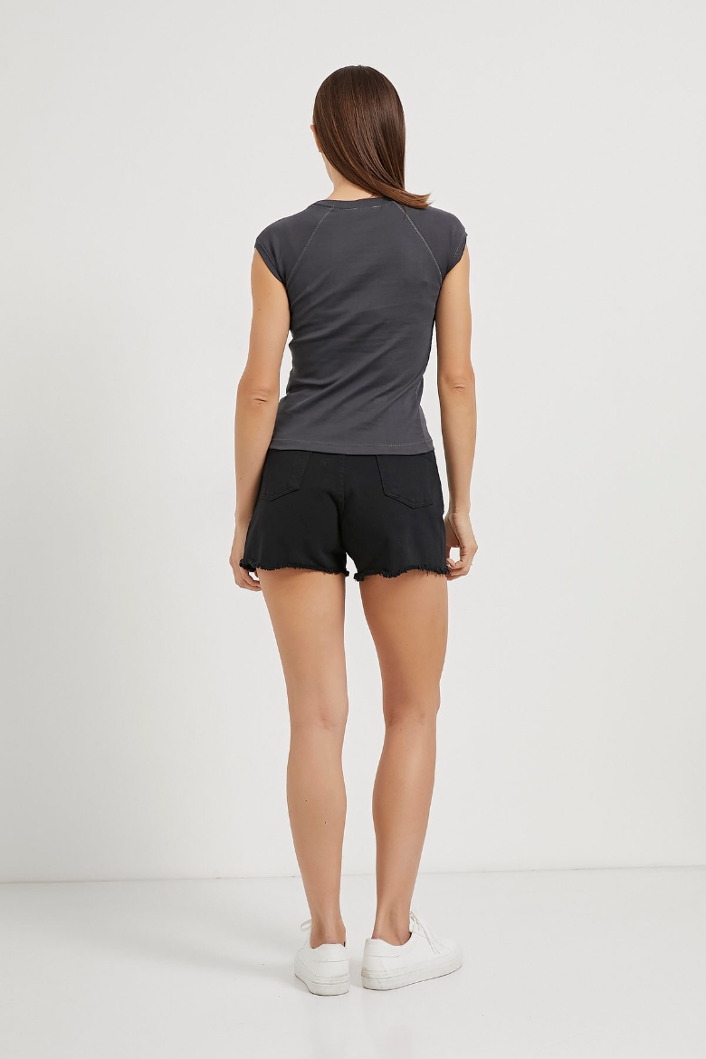Bisiklet Yaka Kol Detaylı T-Shirt