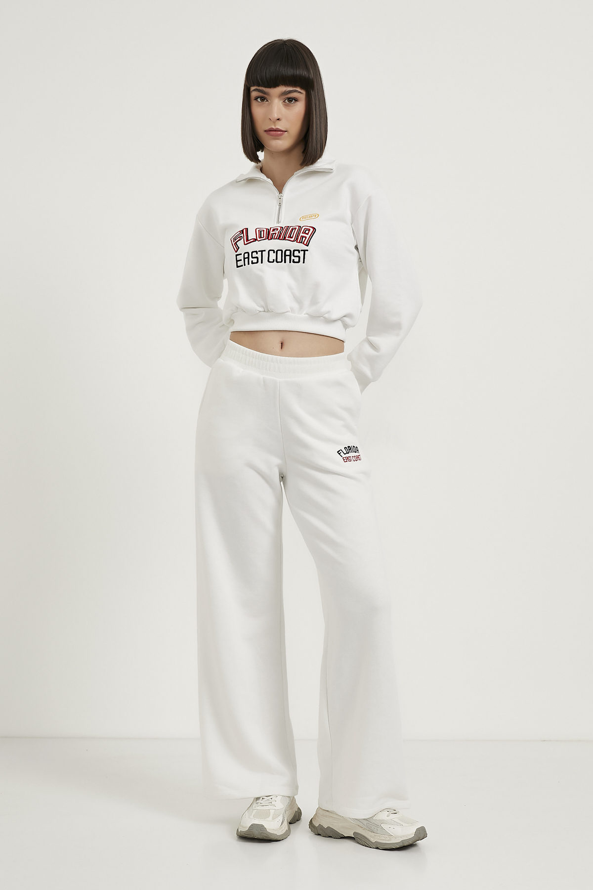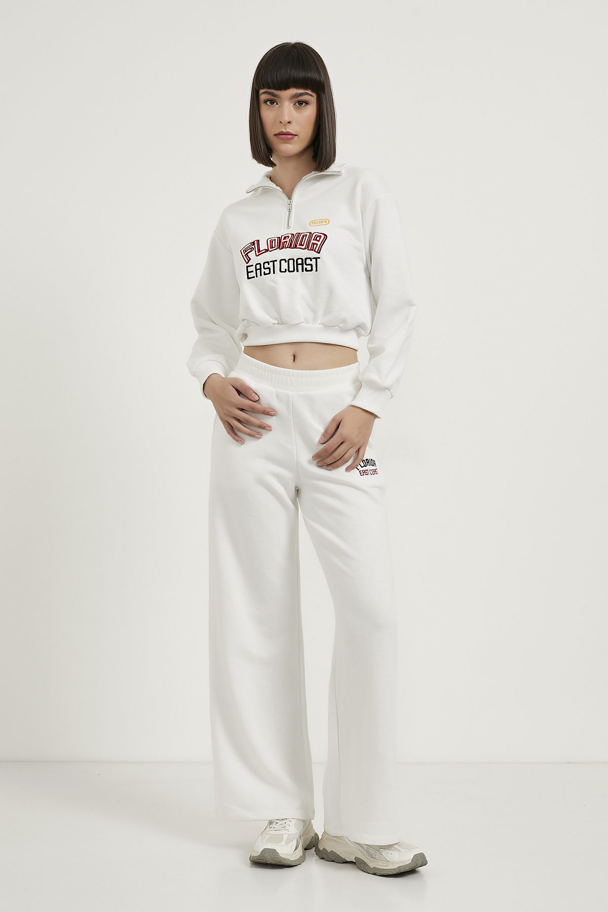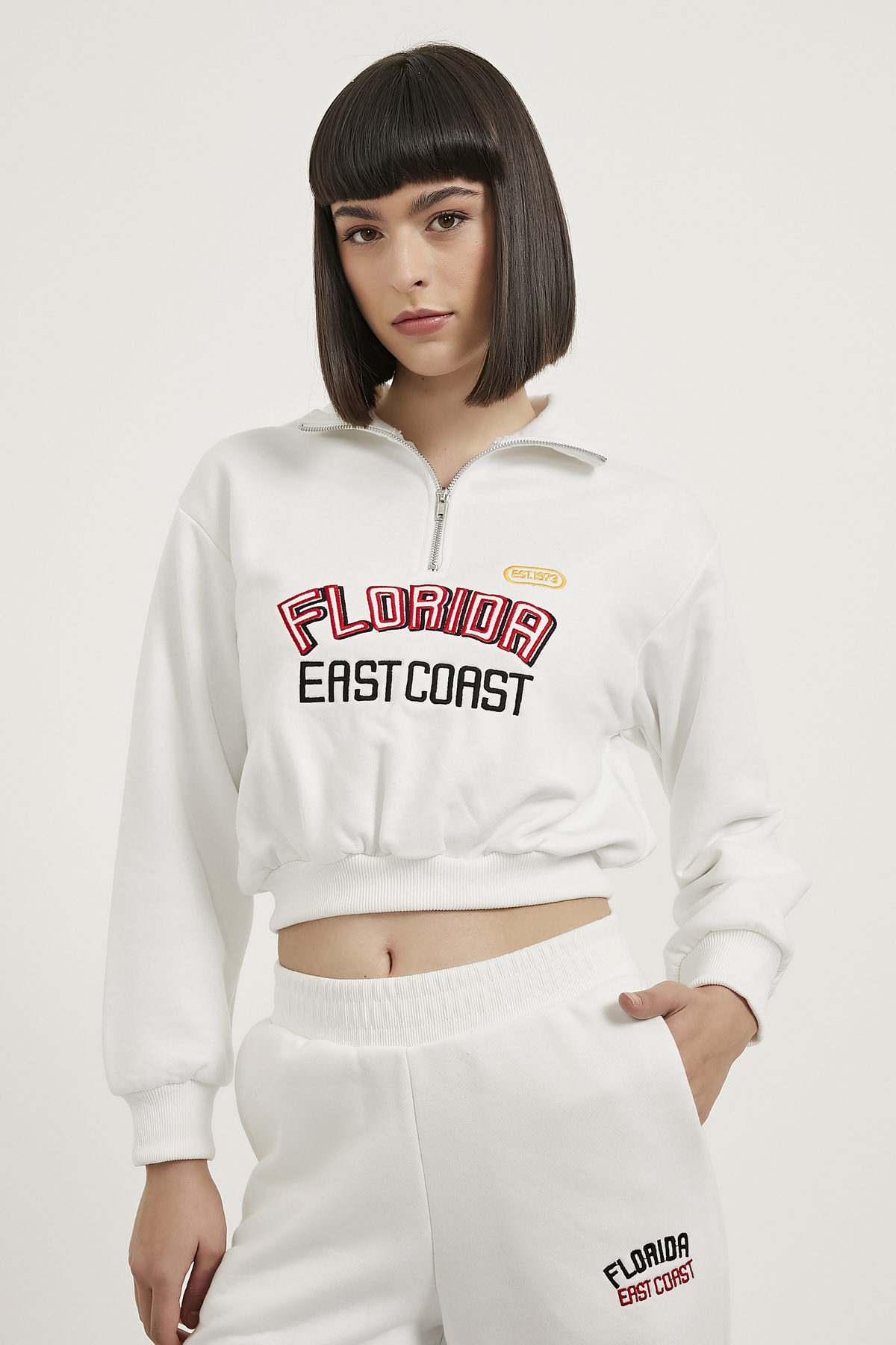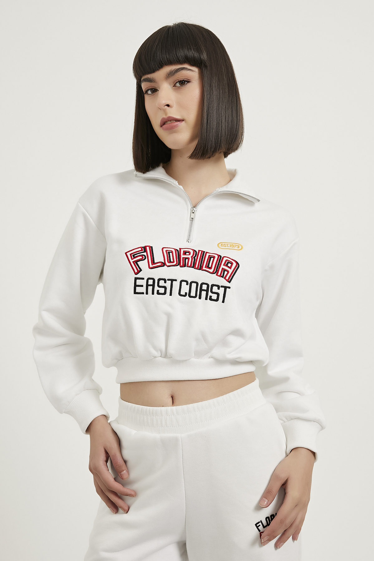 Nakışlı Yaka Fermuarlı Sweat