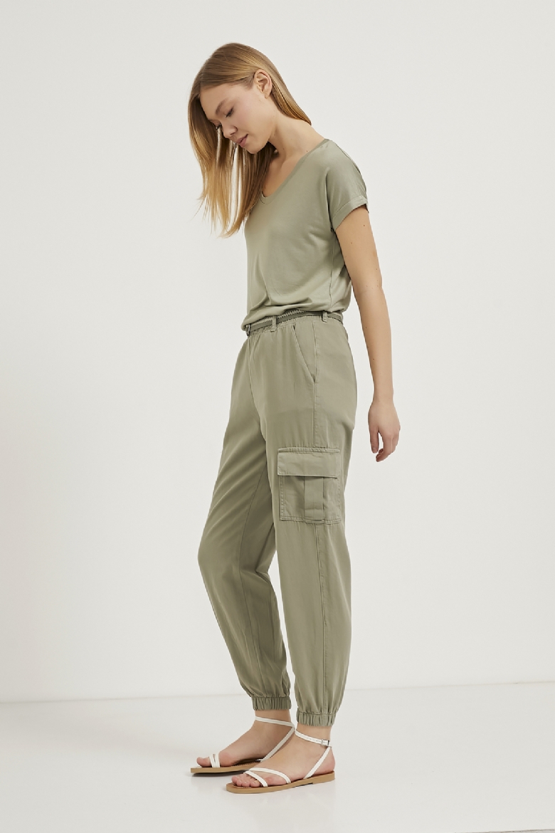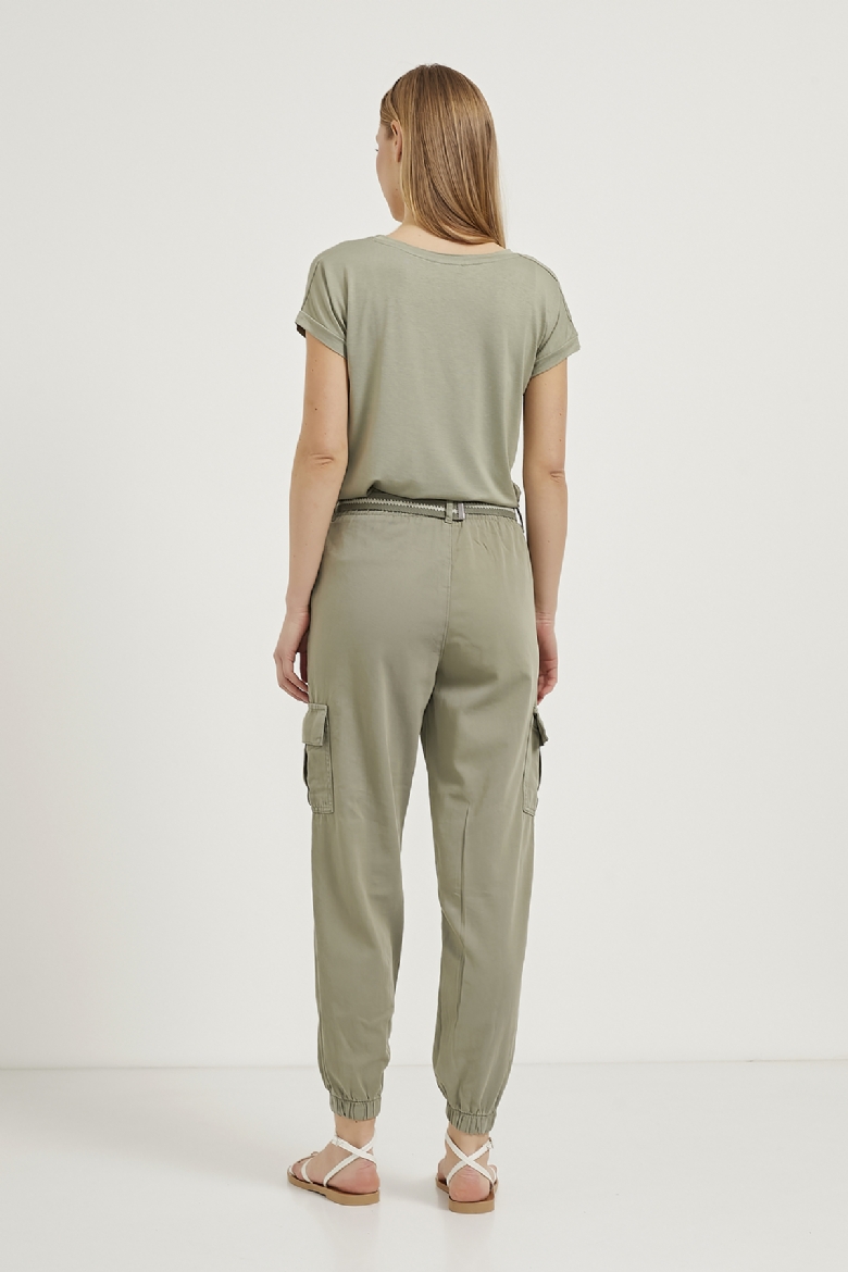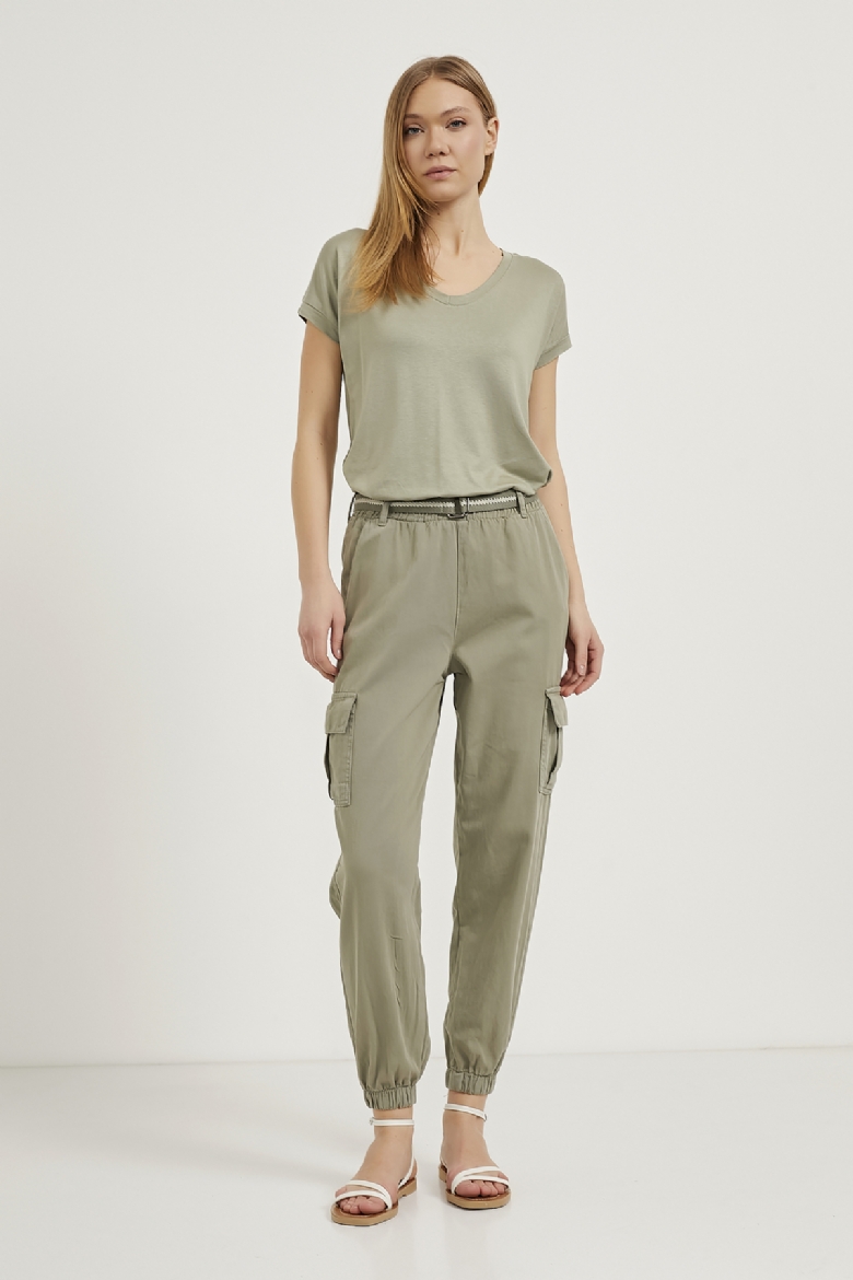 Palaska Kemerli Cep Detaylı Paça Lastikli Pantolon
