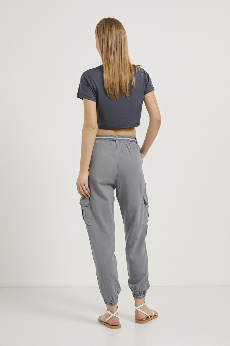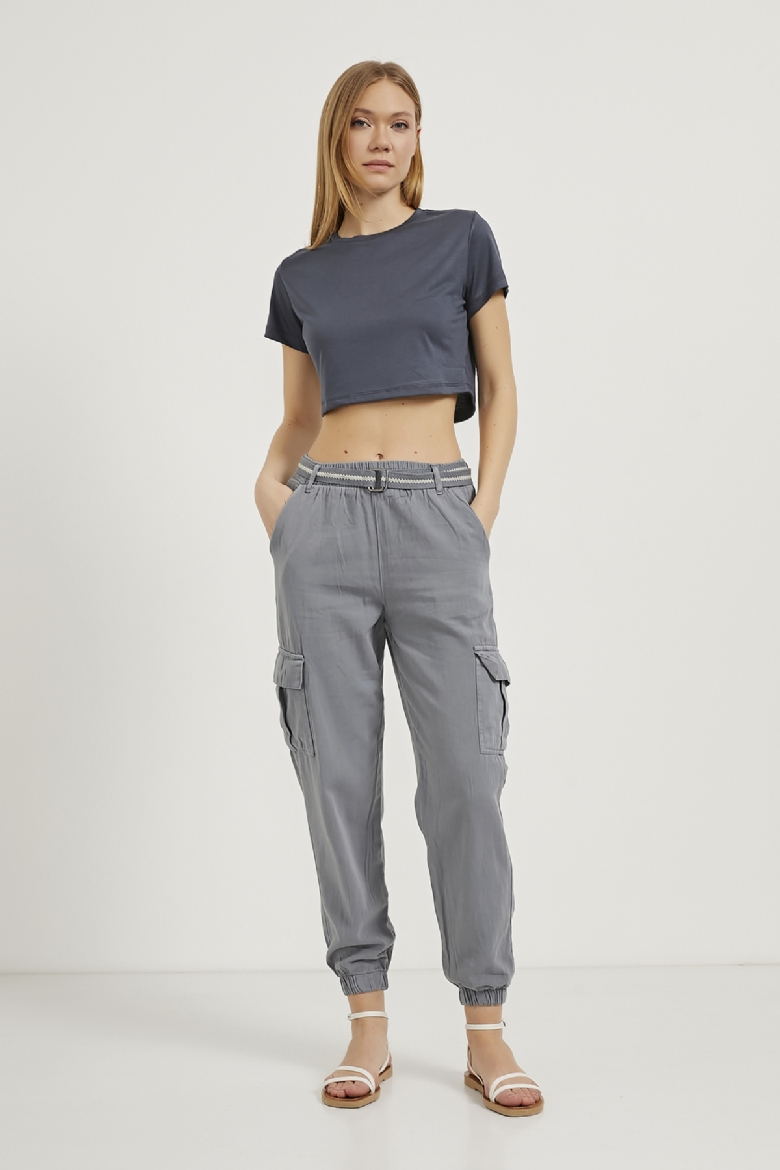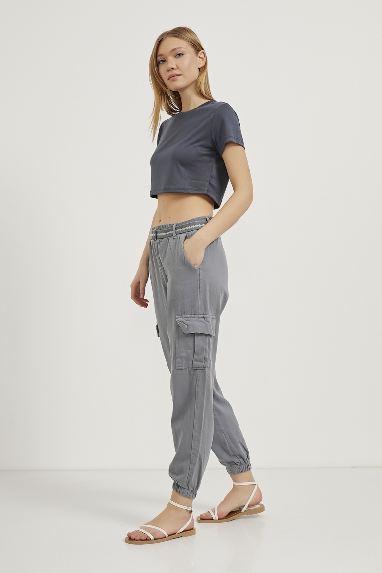 Palaska Kemerli Cep Detaylı Paça Lastikli Pantolon