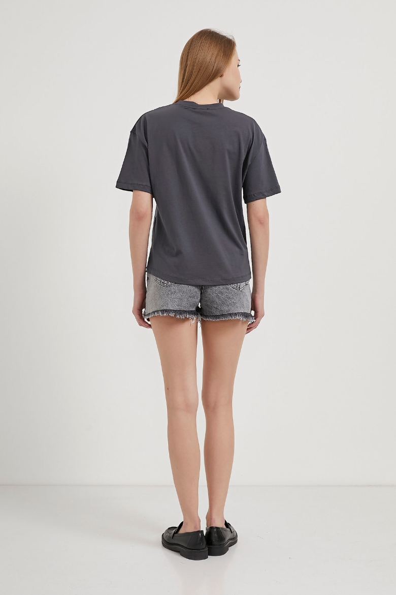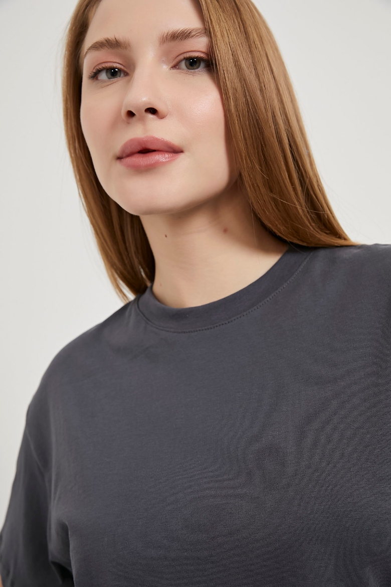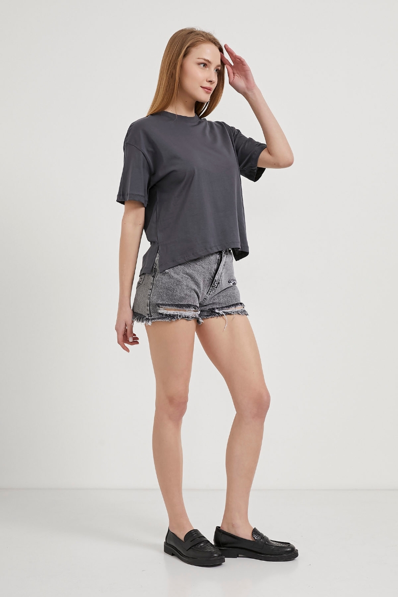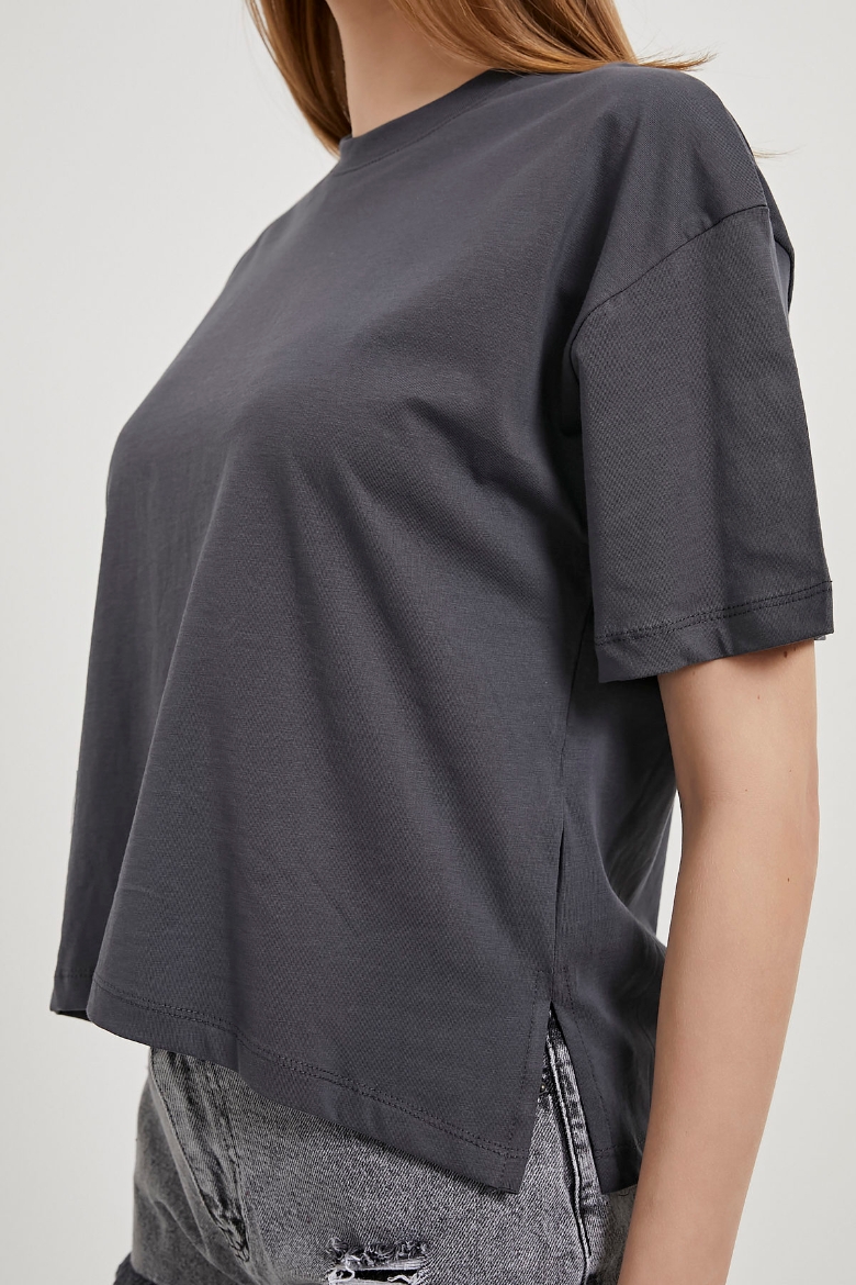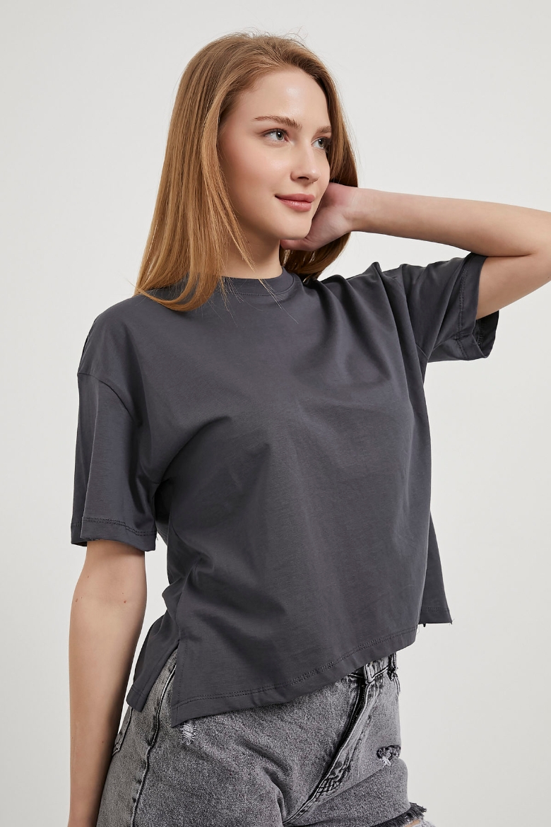 Yanı Yırtmaçlı Bisiklet Yaka Basic T-Shirt