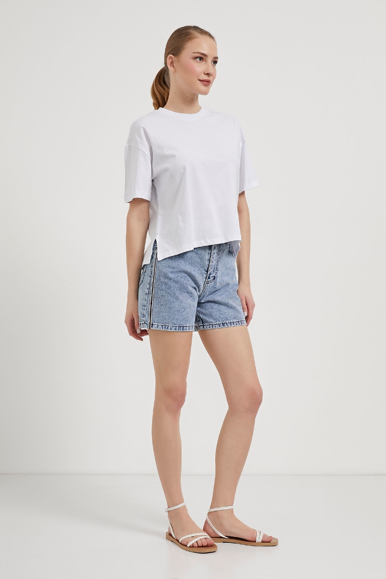 Yanı Yırtmaçlı Bisiklet Yaka Basic T-Shirt