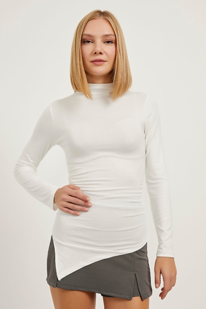 Yırtmaçlı Dik Yaka Soft Esnek Bluz